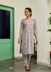 HOC Cotton Chikankari Printed Women's Long Kurta - Green