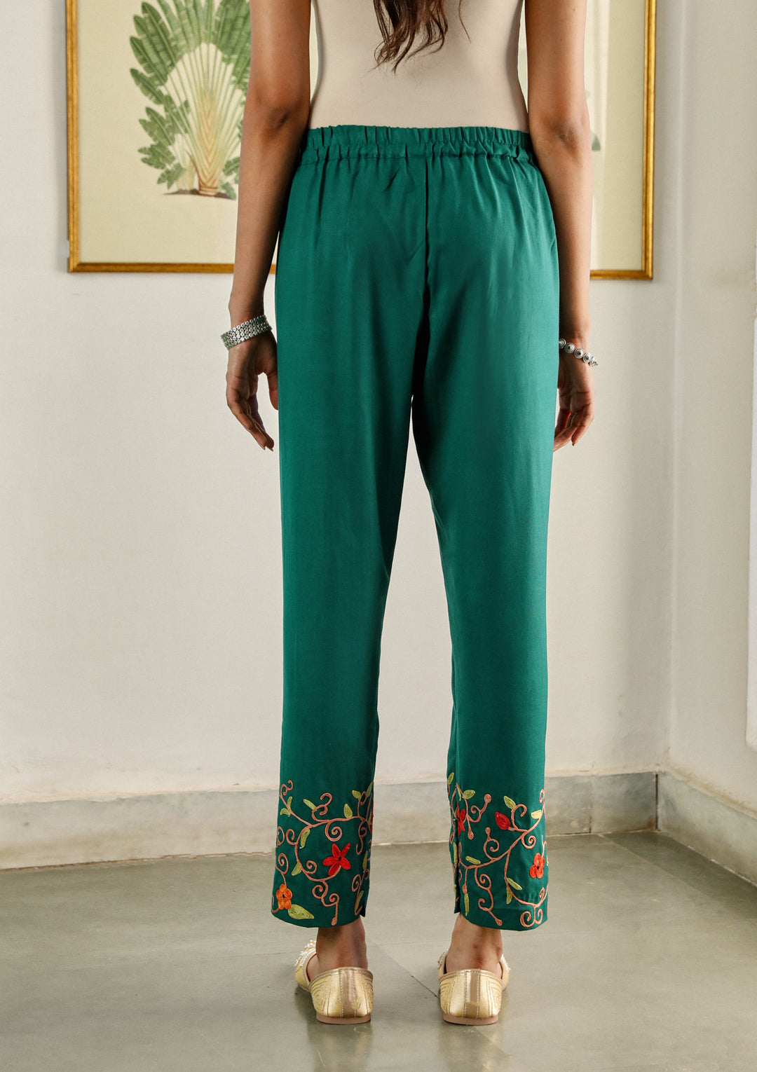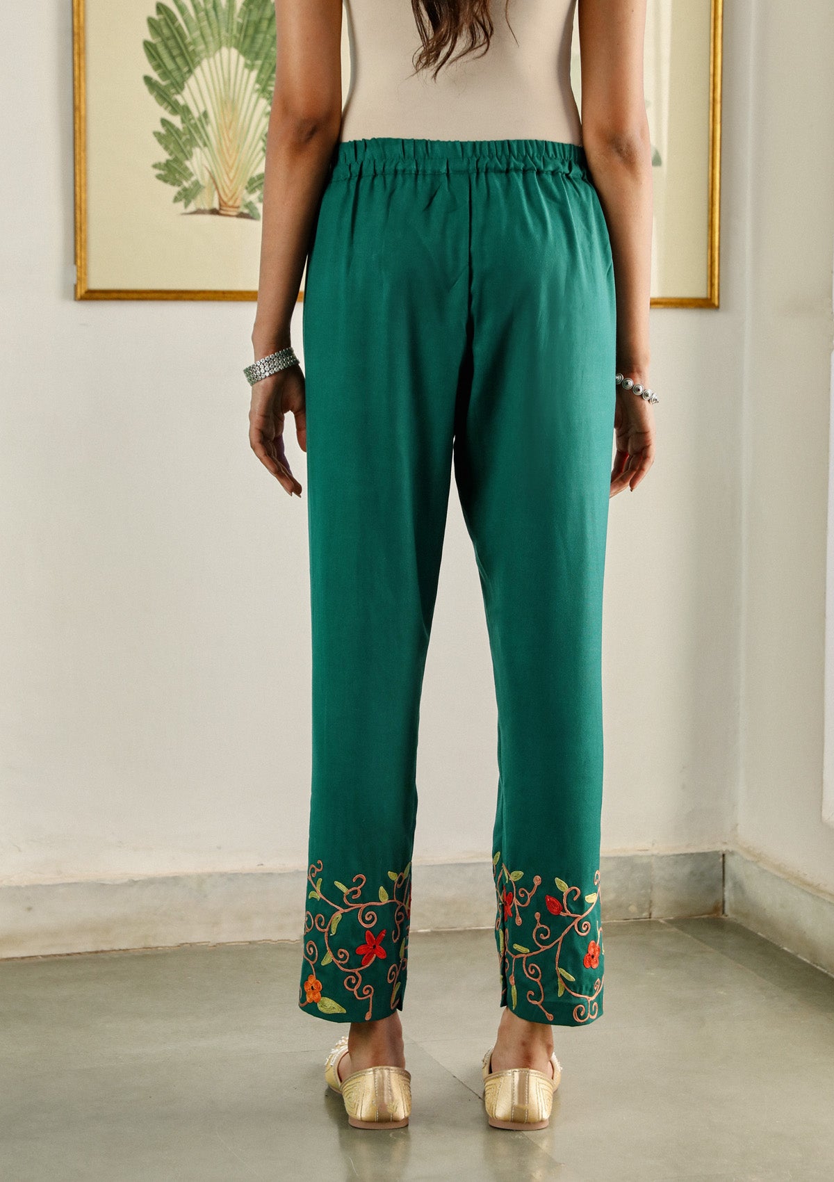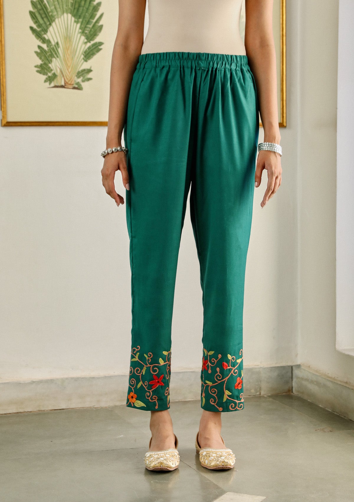 HOC Aari Embroidered Cotton Solid Women's 2PC Long Kurta Set - Teal Green