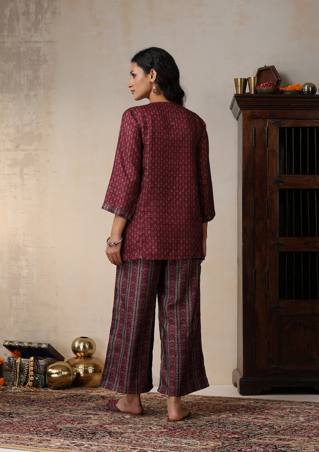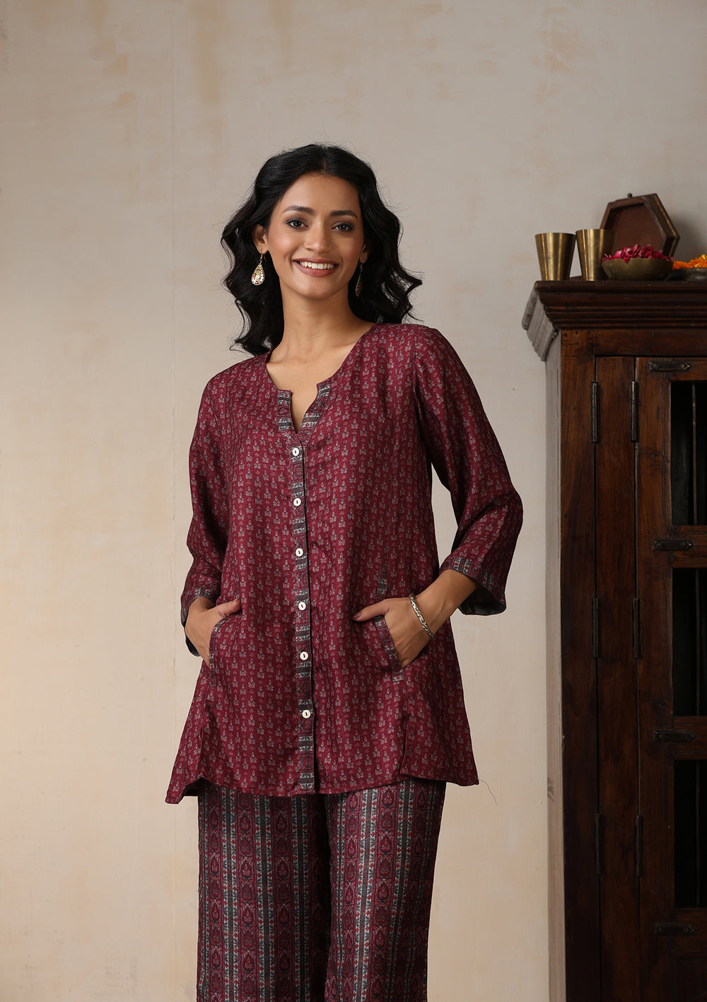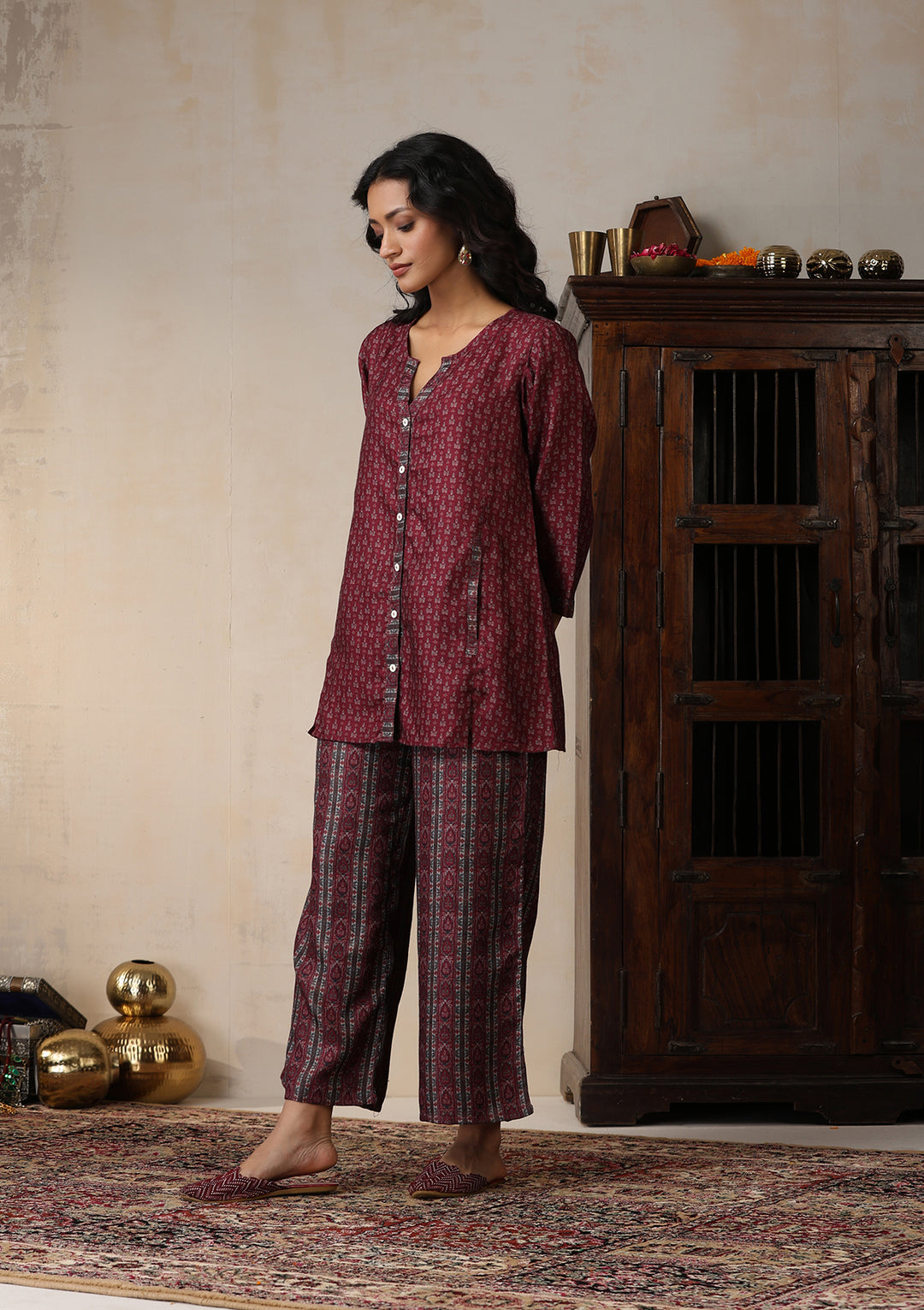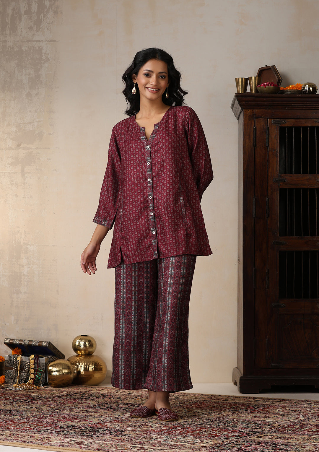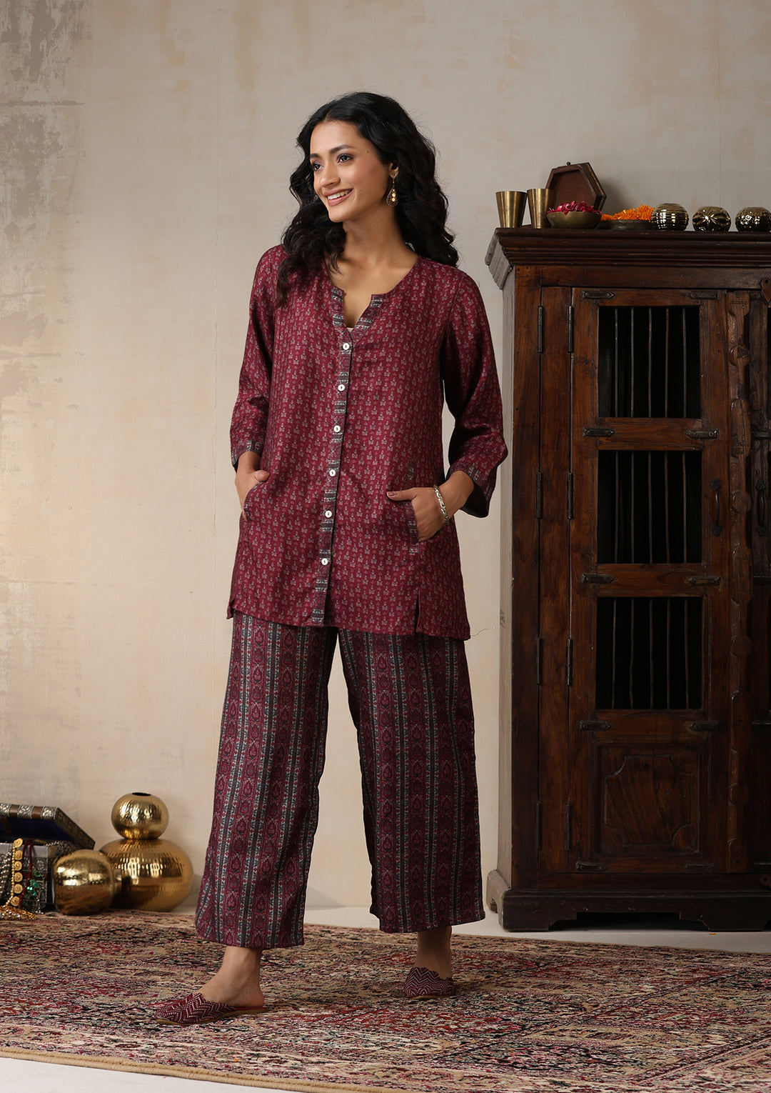 HOC Pashmina Printed Women's 2 PC Co-ord Set - Maroon