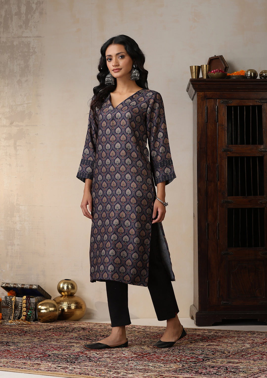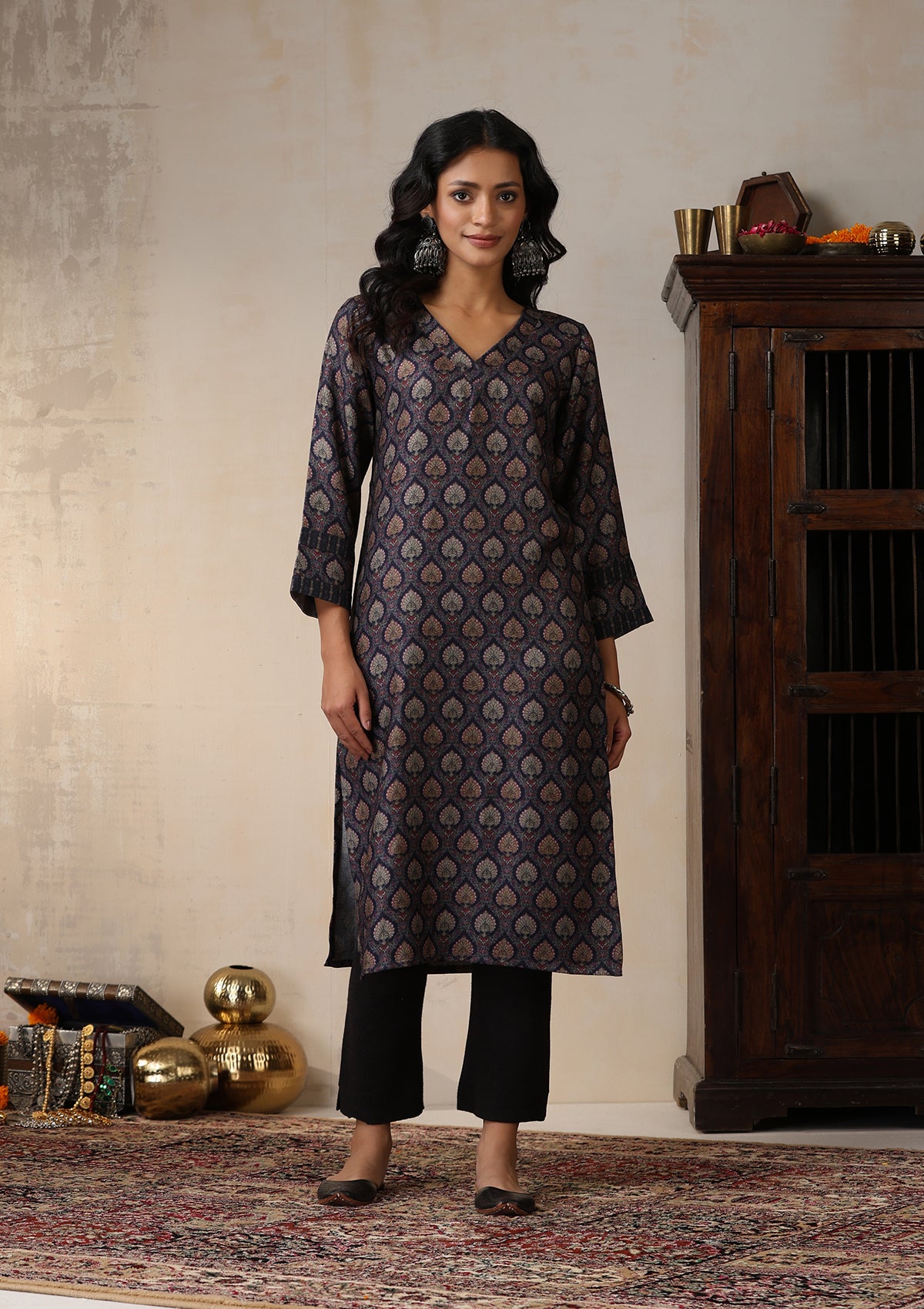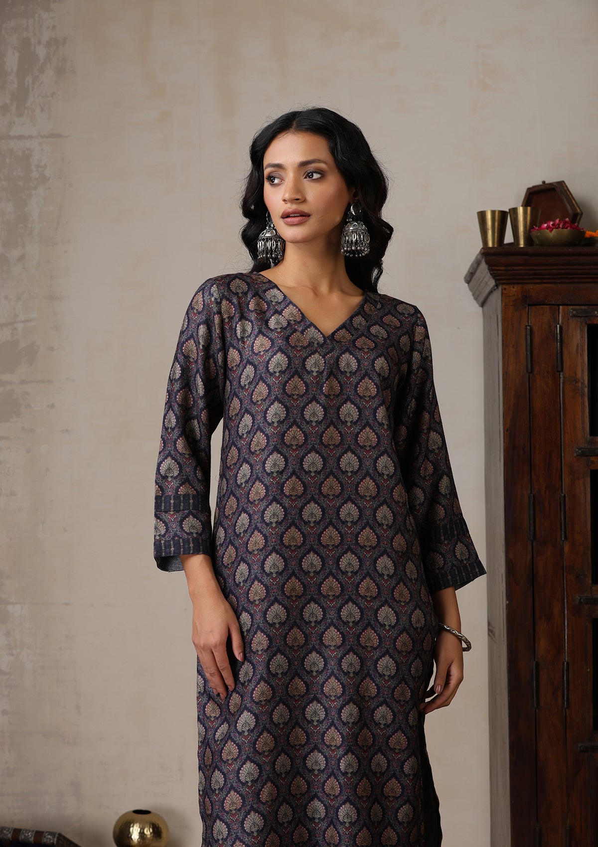 HOC Pashmina Printed Women's 2 PC Co-ord Set - Maroon