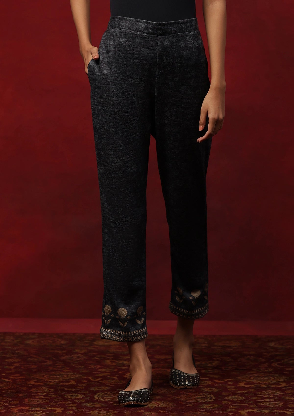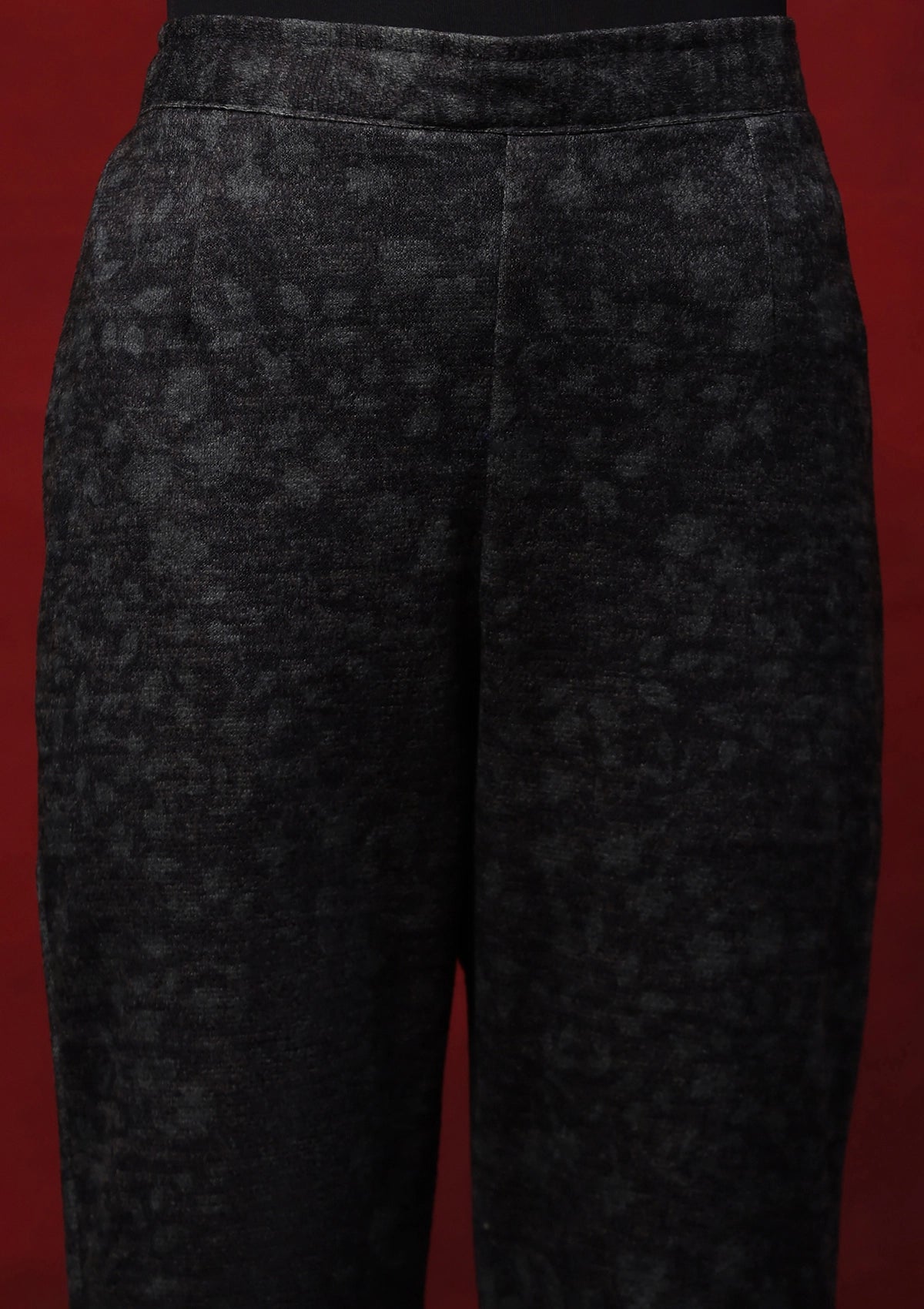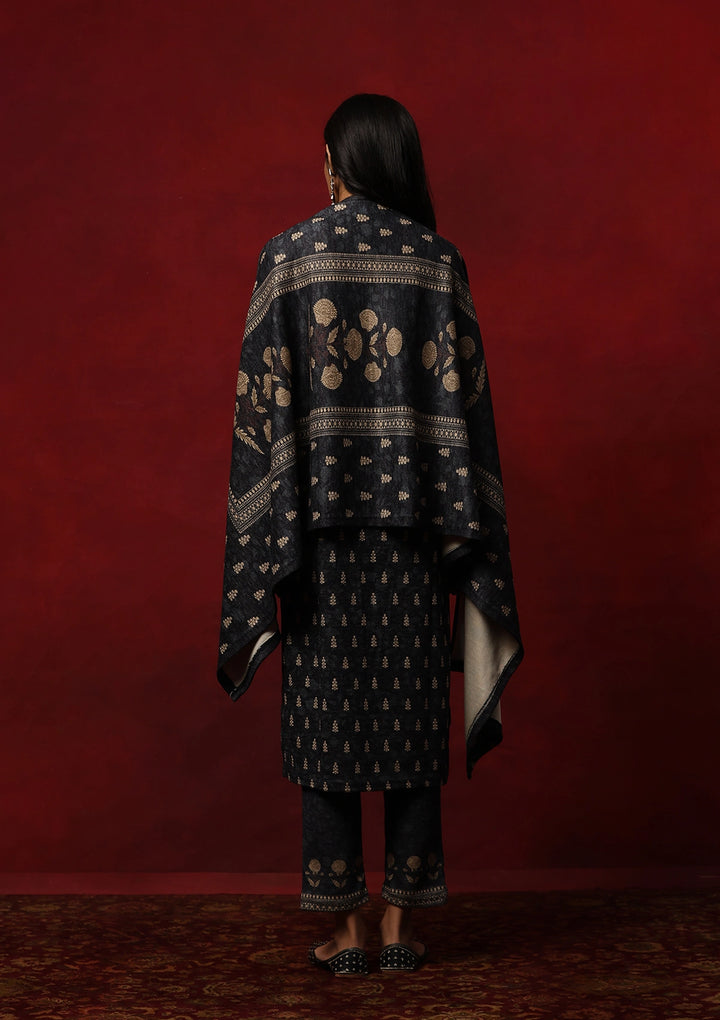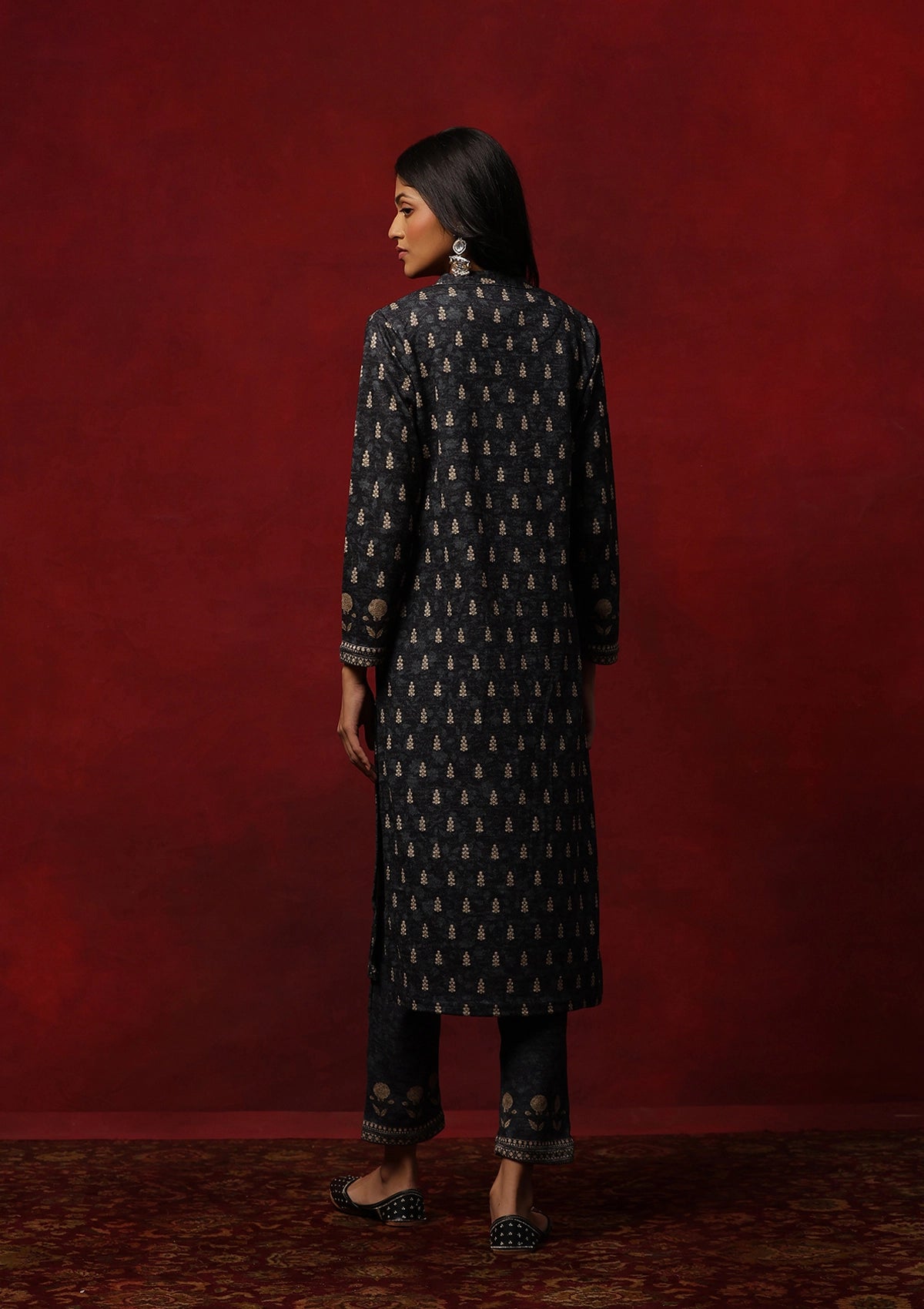 HOC Woollen Hand Embellished Printed Women's 3 PC Kurta Set -Dark Grey