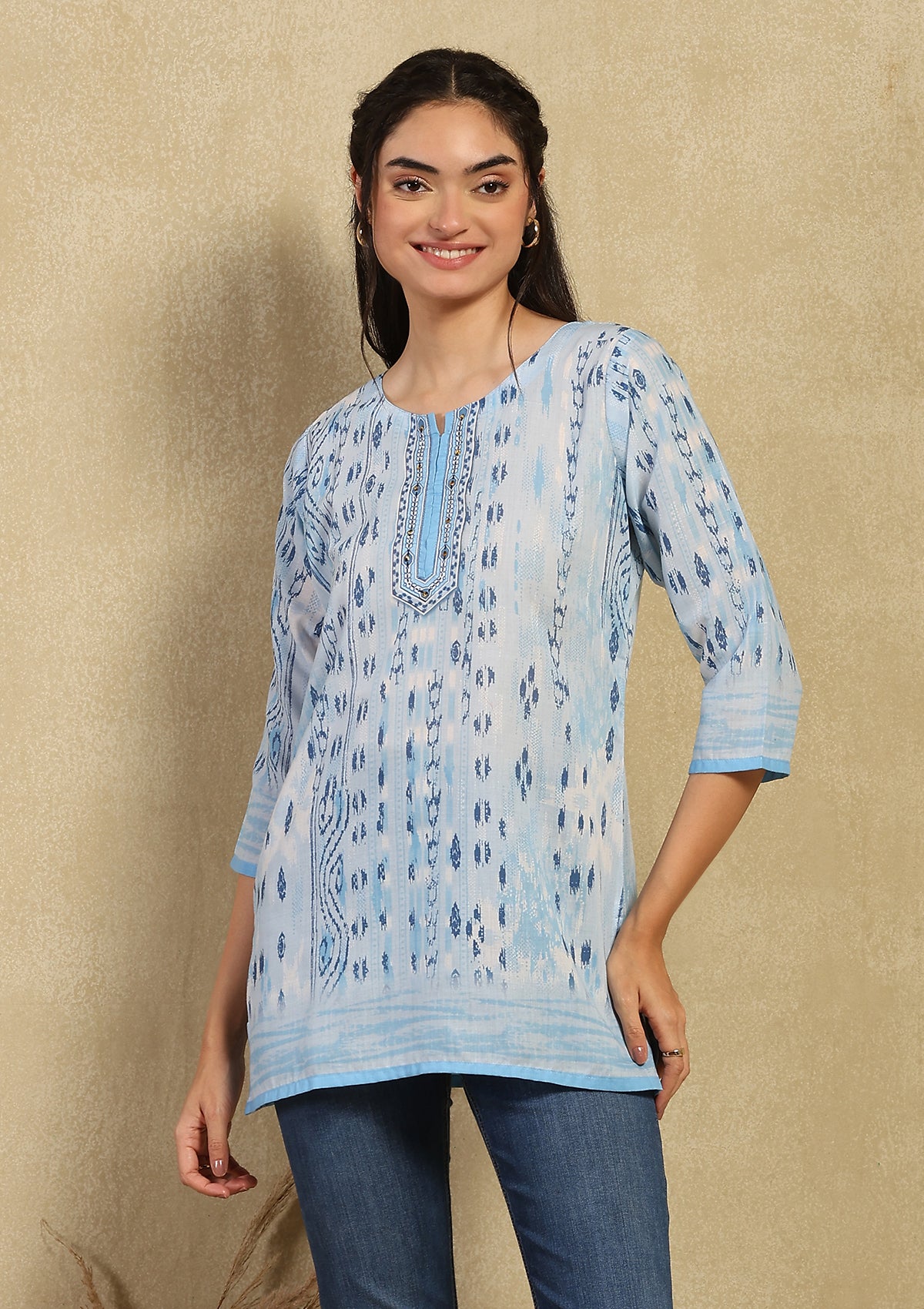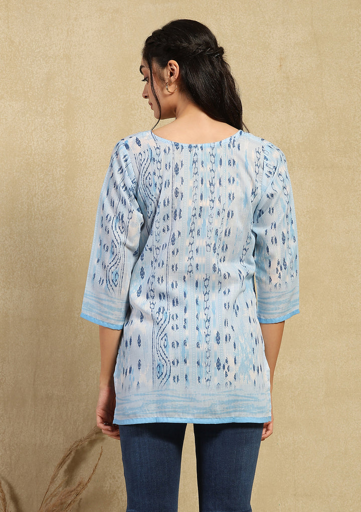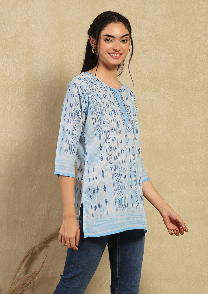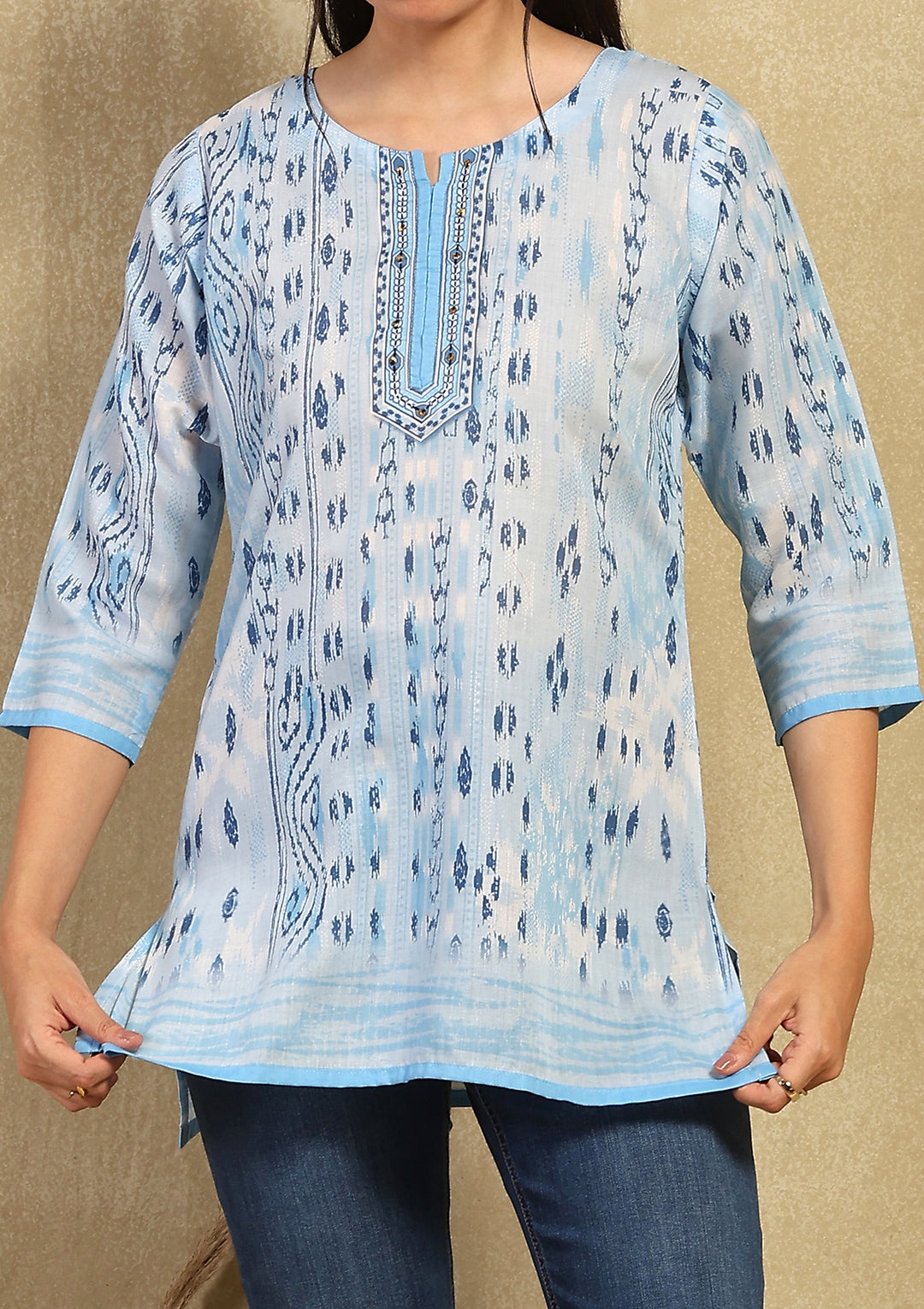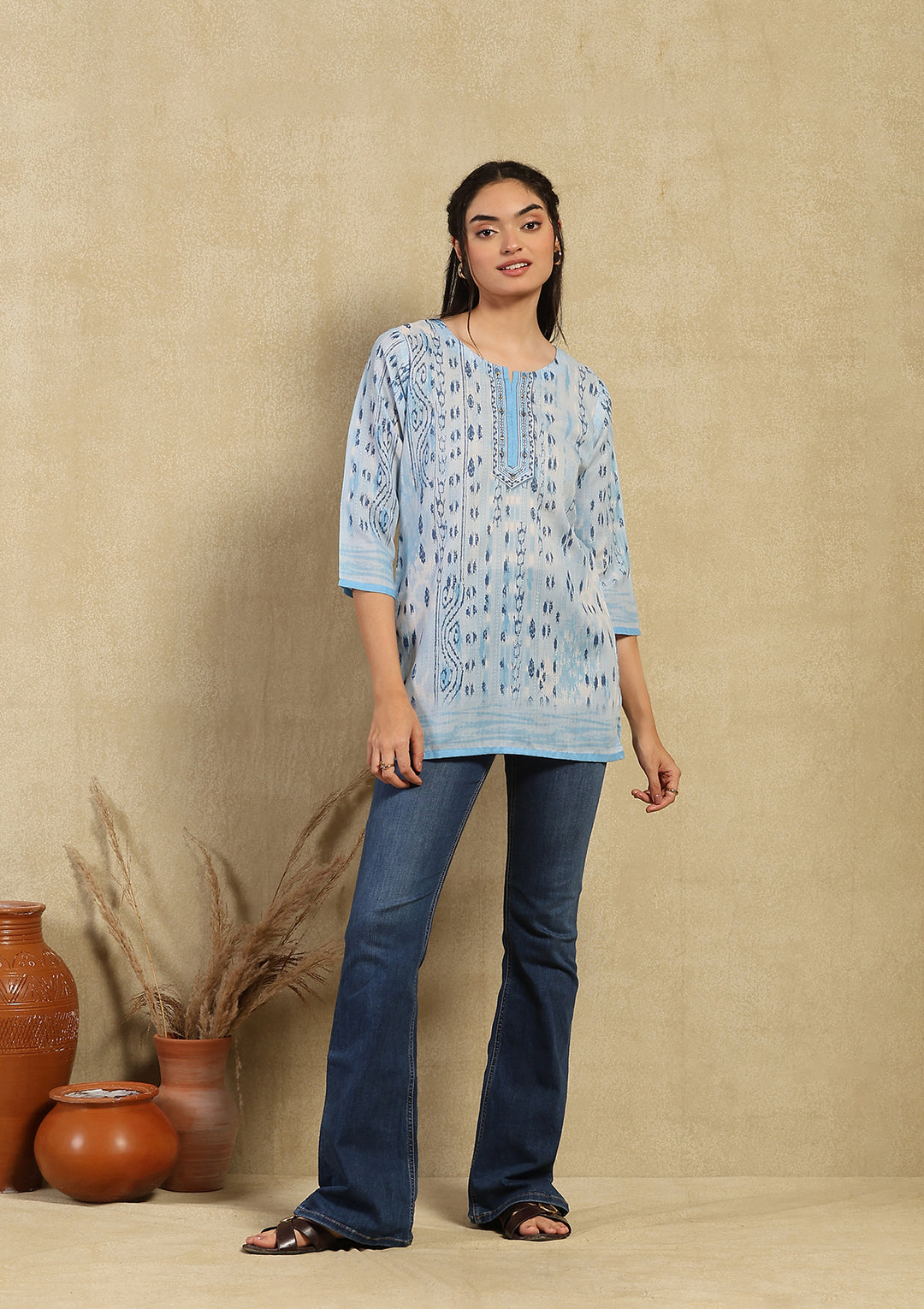 HOC Kashmiri Wool Aari Embroidered Solid Women's Short Kurta - Turquoise Blue