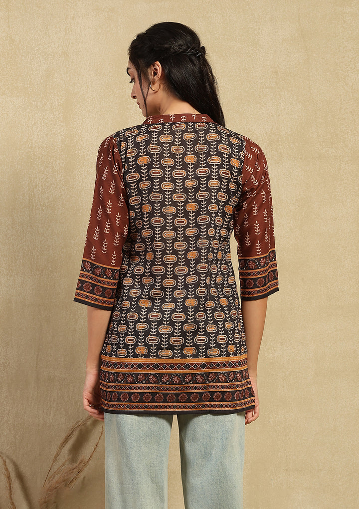 HOC Kashmiri Wool Aari Embroidered Solid Women's Short Kurta - Black