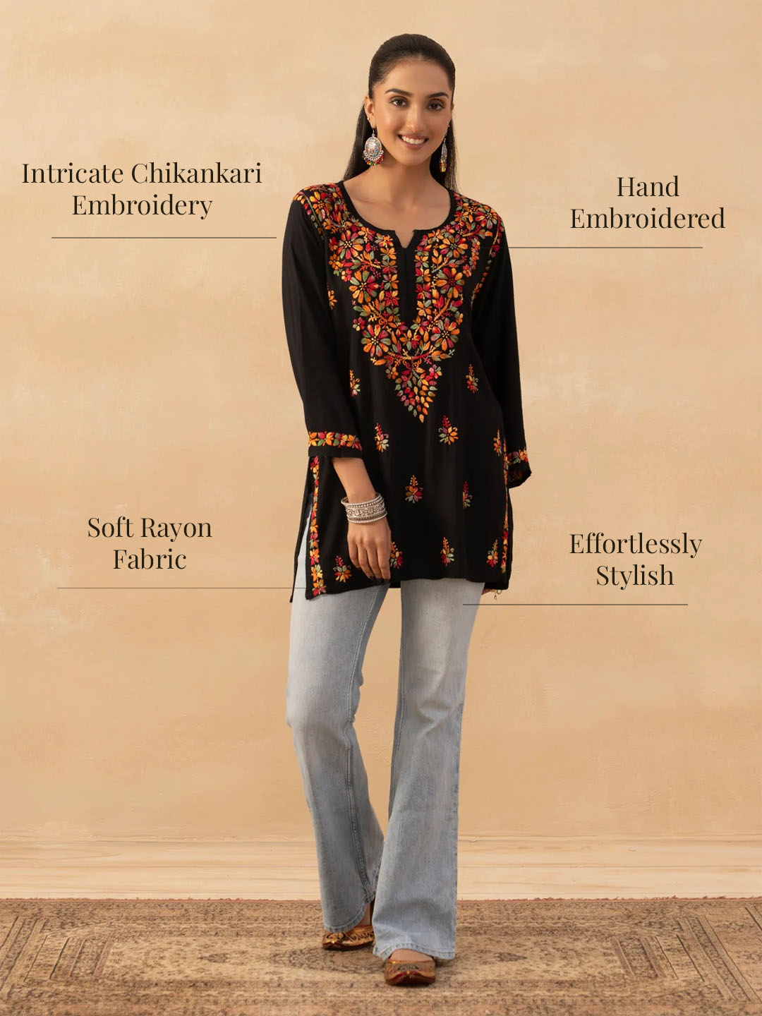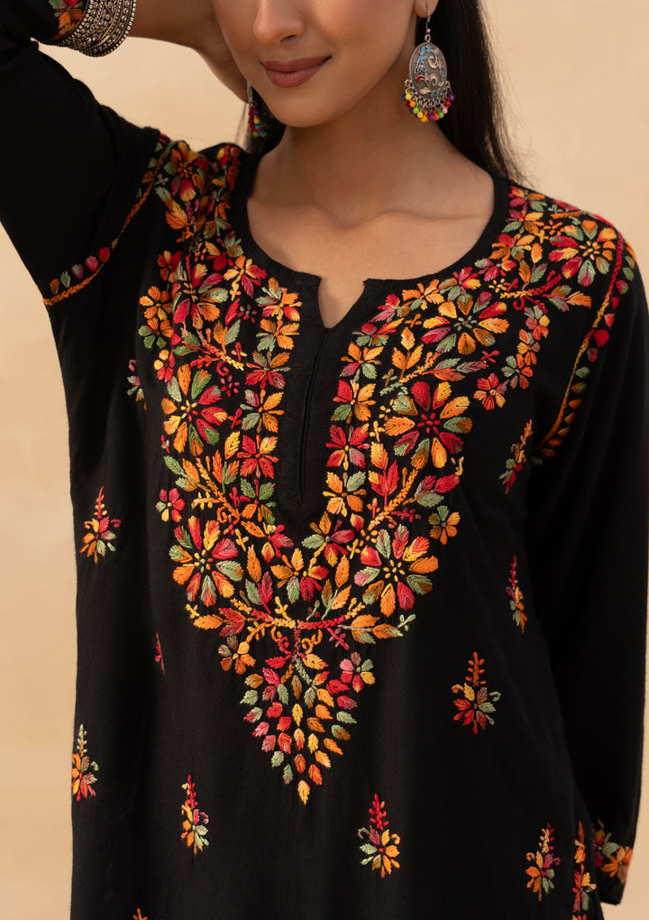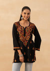 HOC Rayon Chikankari Solid Women's Short Kurta -Black
