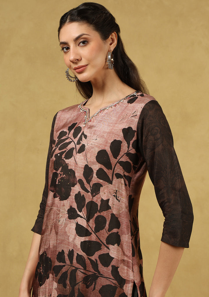 HOC Hand Embellished Muslin Printed Women's 3 PC Long Kurta Set with Dupatta - Black