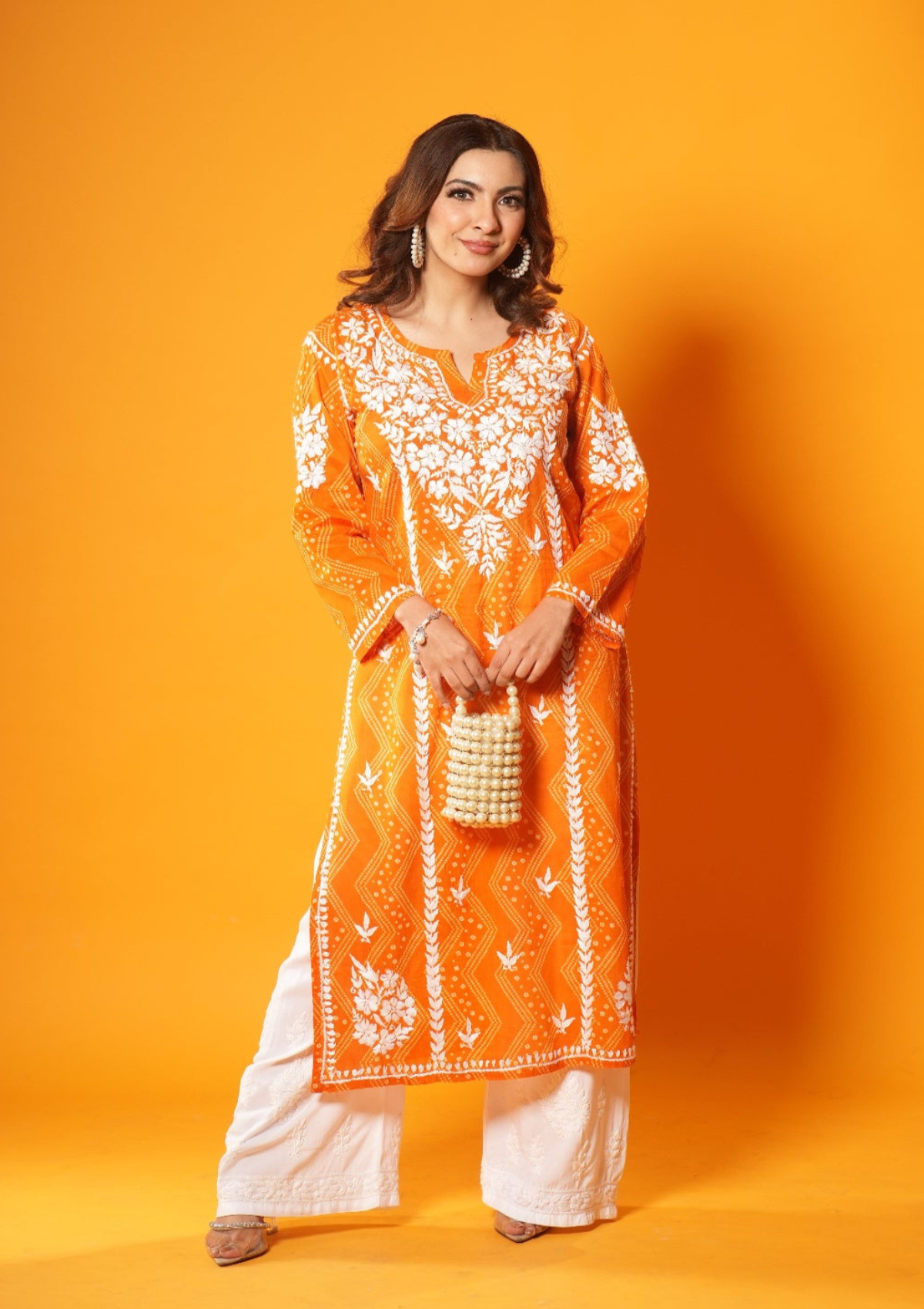 HOC Jugni Chikankari Printed Mulmul Straight Kurta