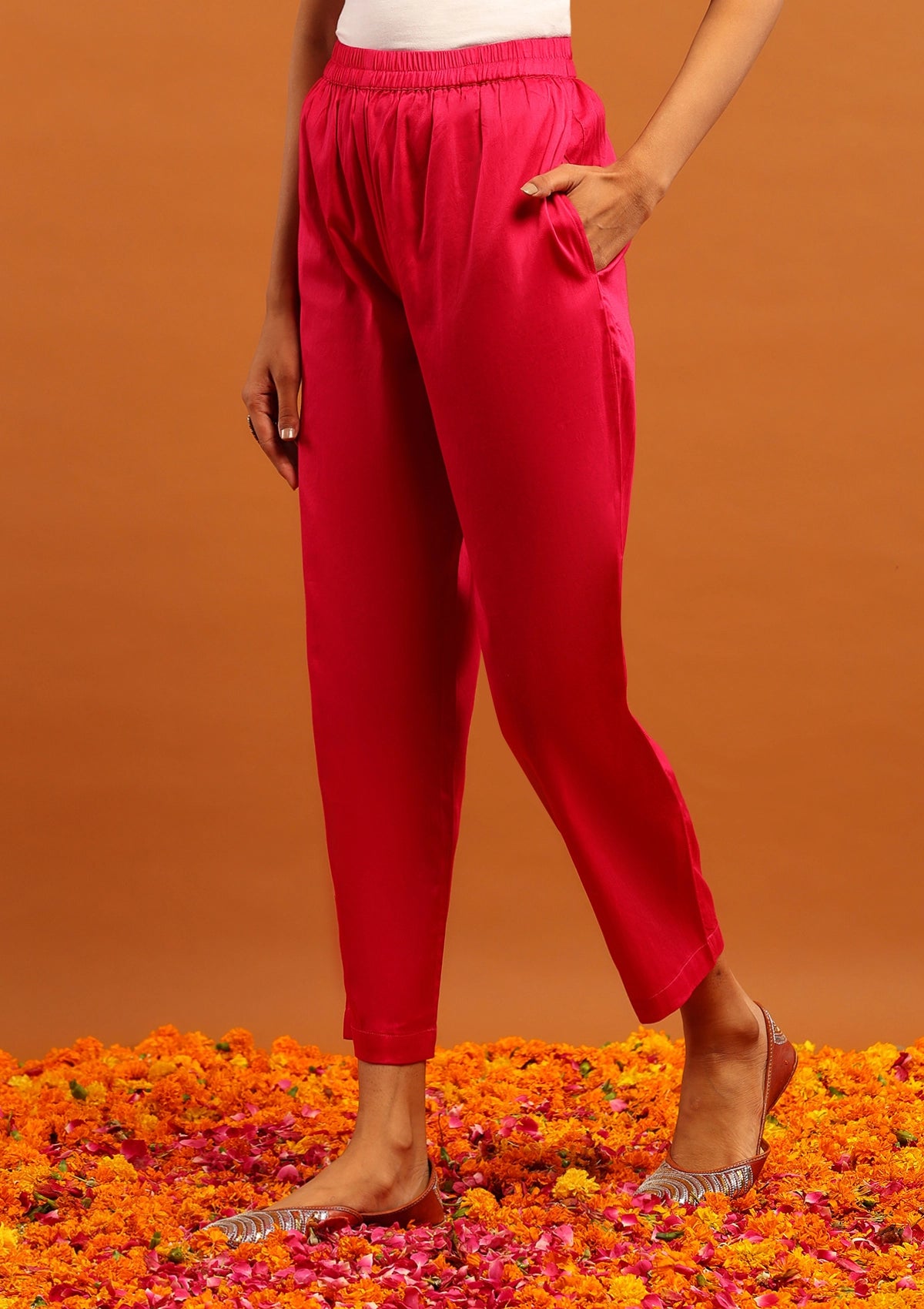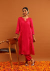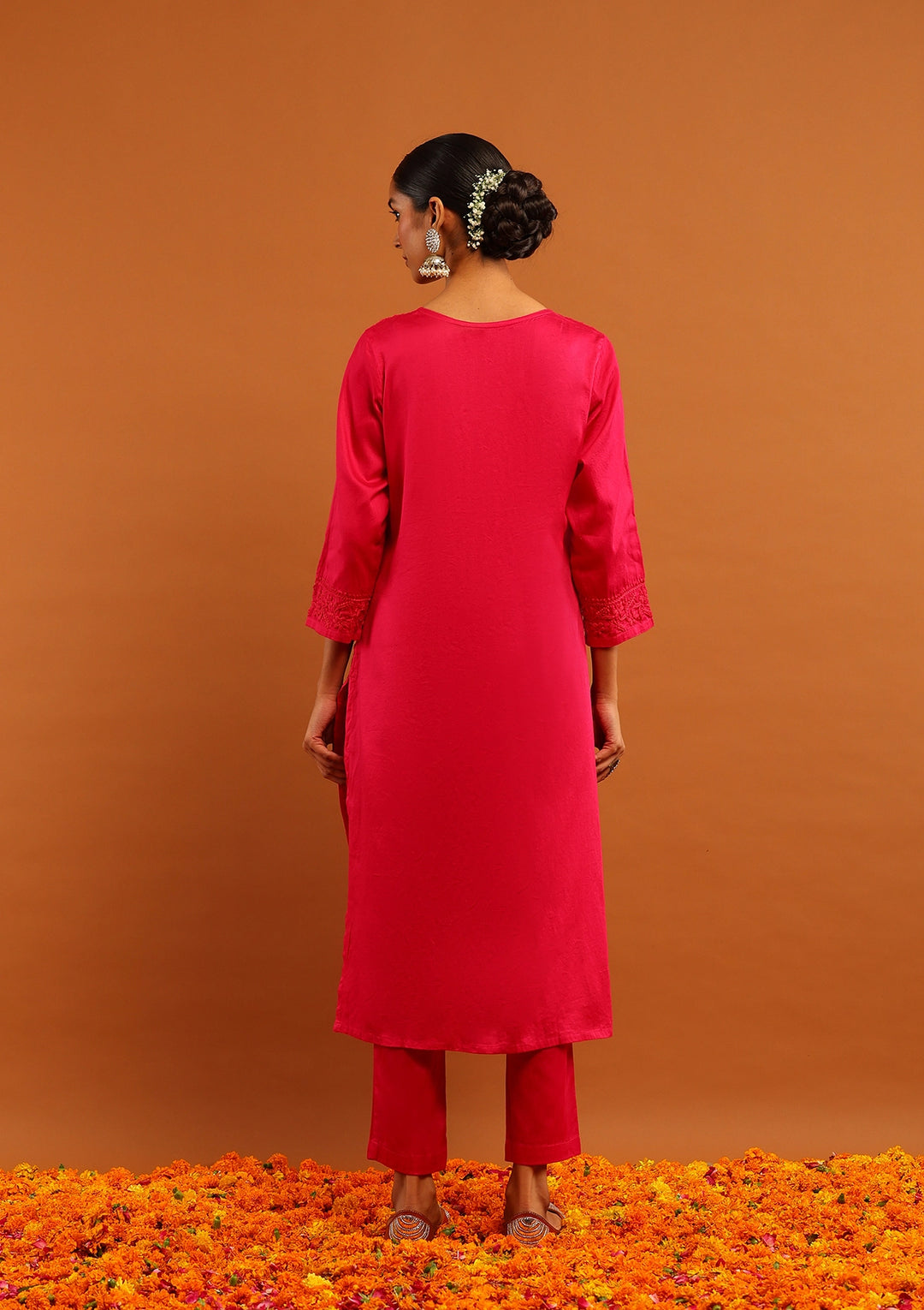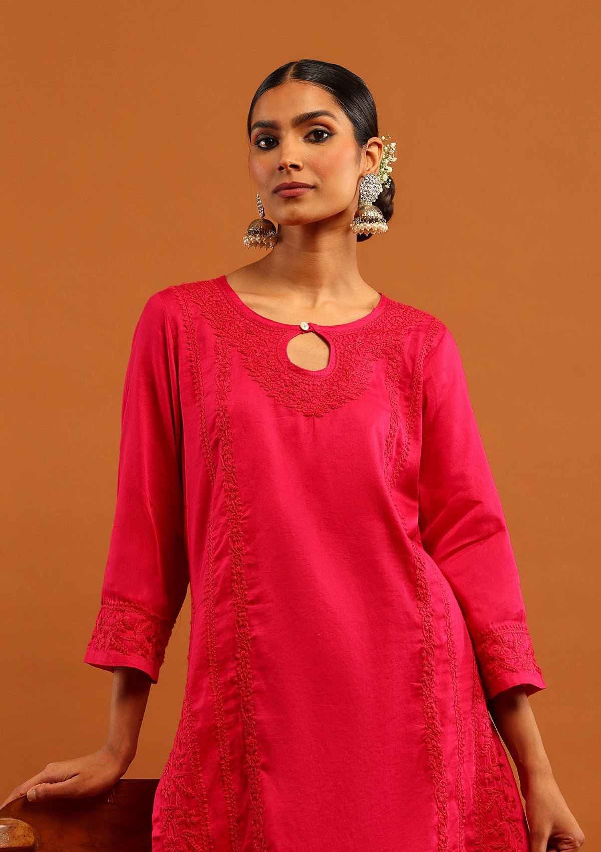 Karisma Jaam Silk Chikankari Solid Women's 2 PC Long Kurta Set - Magenta