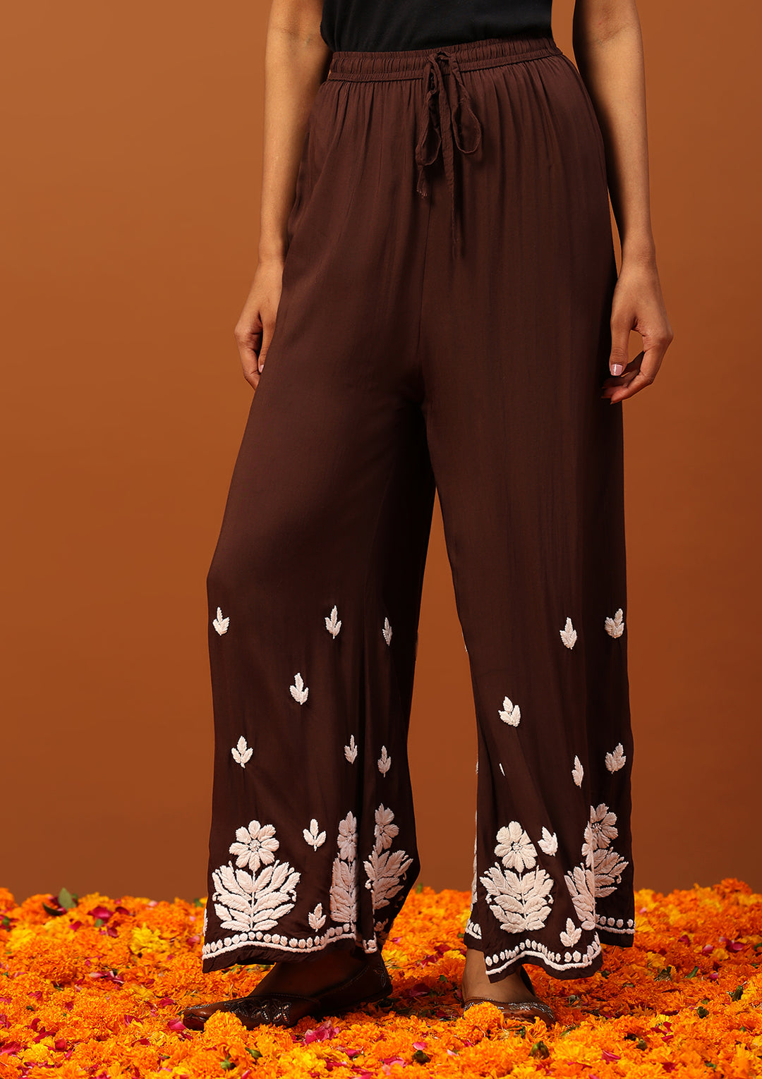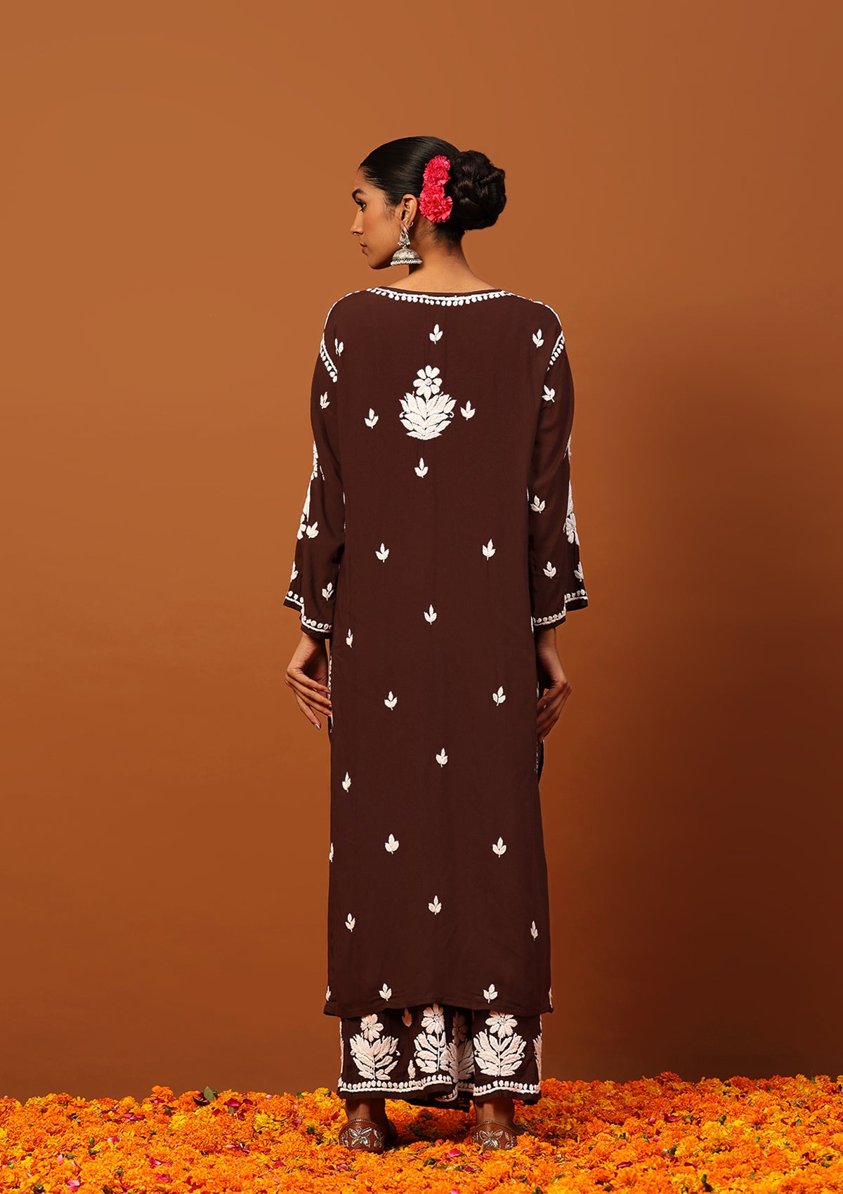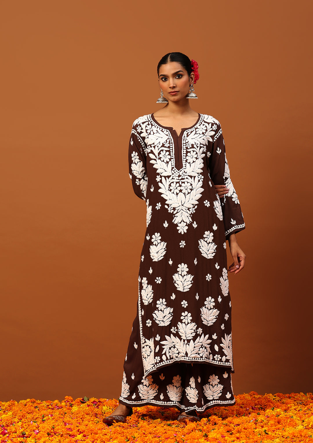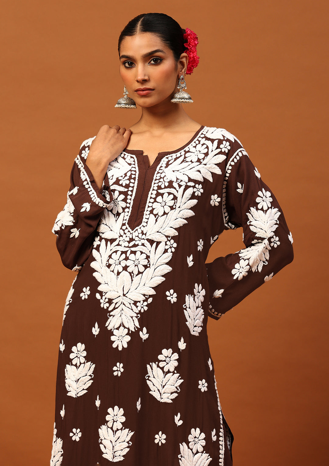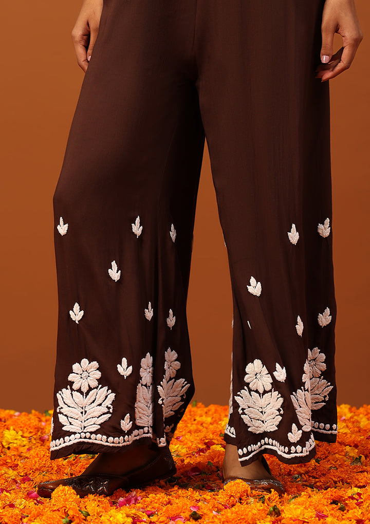 HOC Modal Chikankari Solid Women's 2 PC Long Kurta Set -Brown