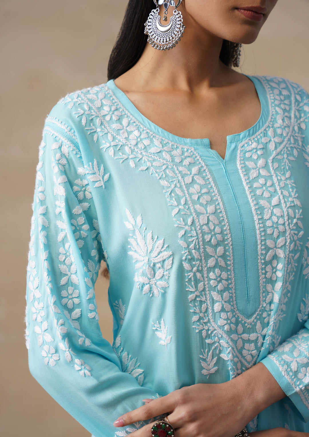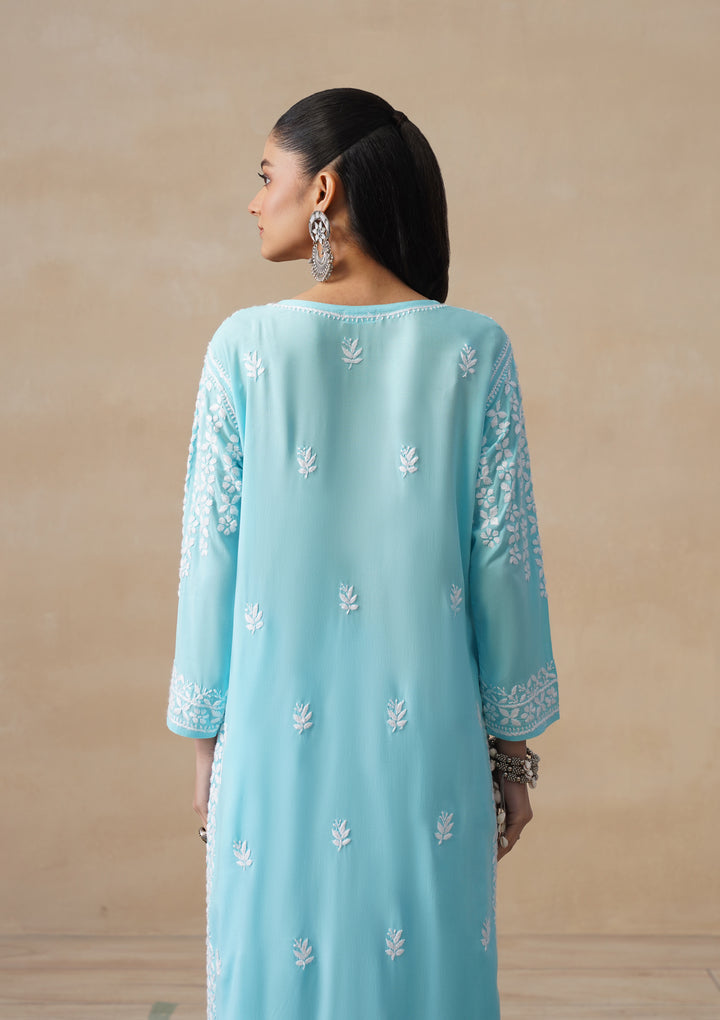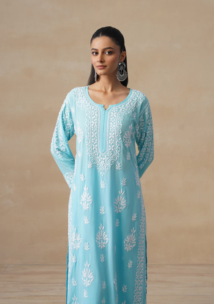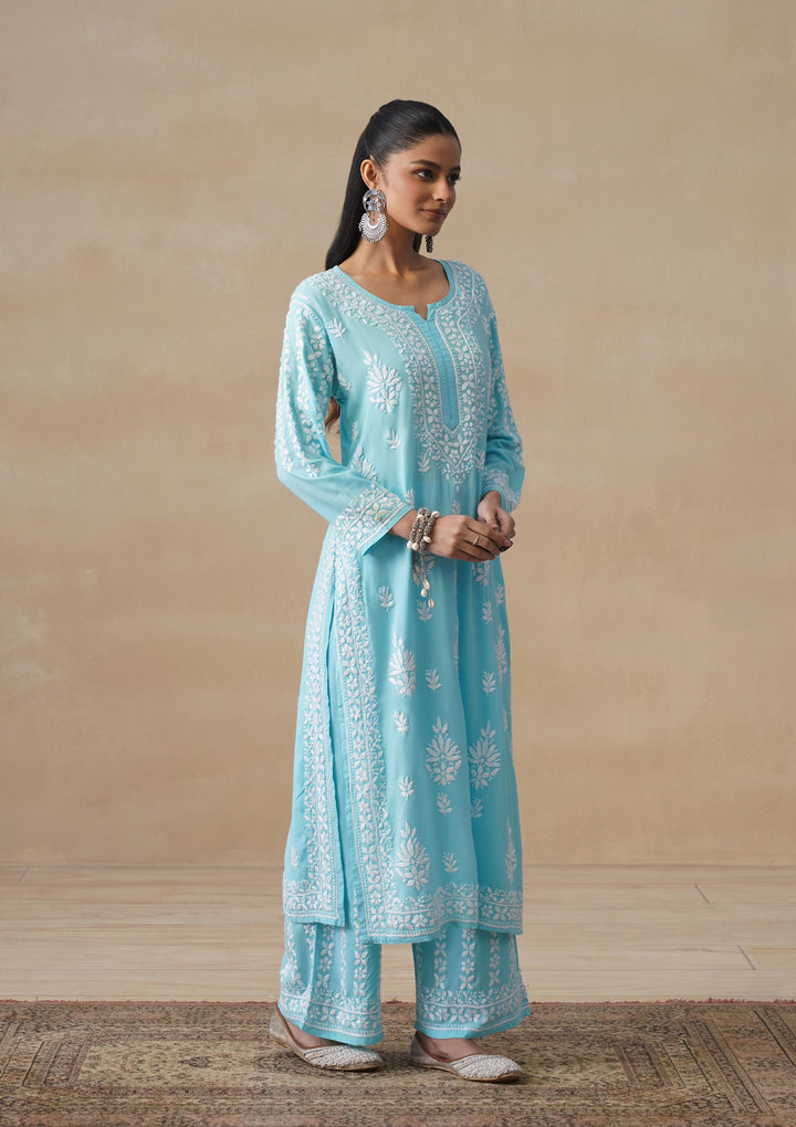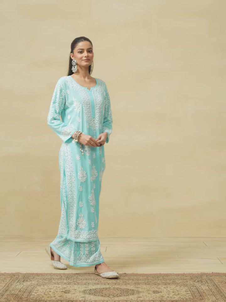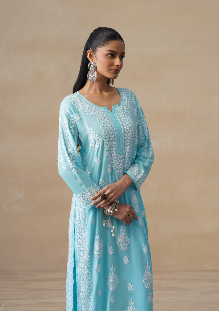 HOC Modal Chikankari Solid Women's 2 PC Long Kurta Set - Light Blue