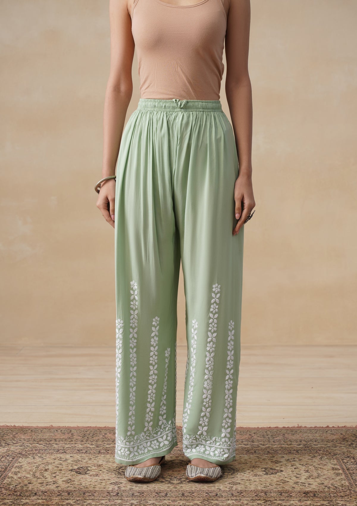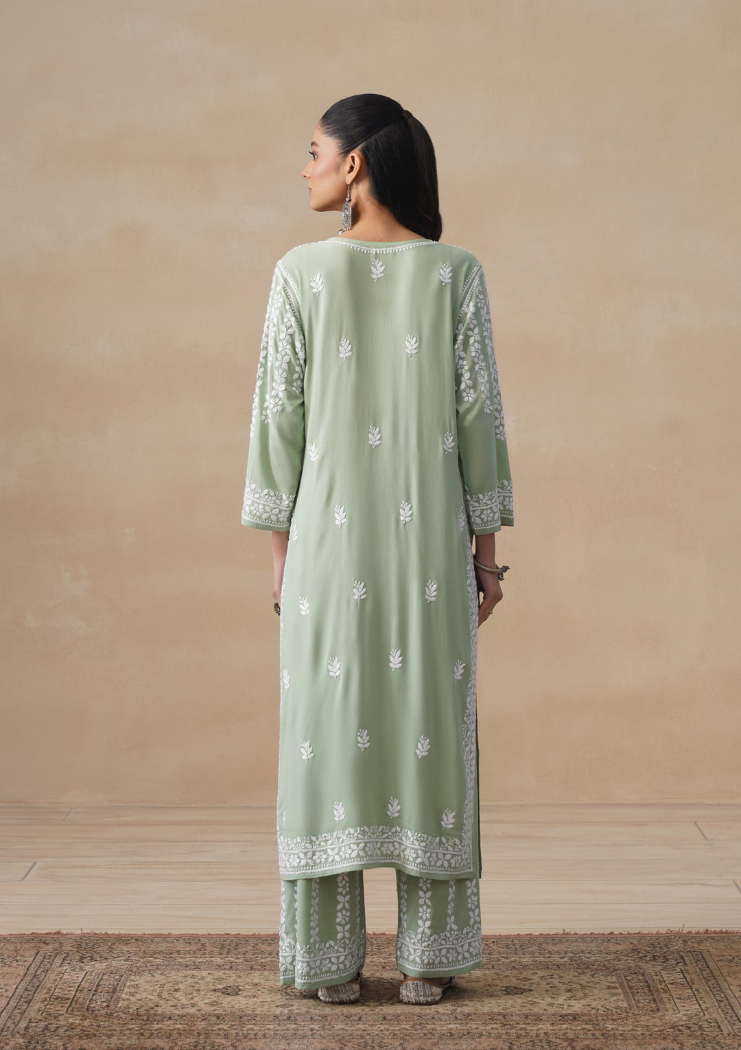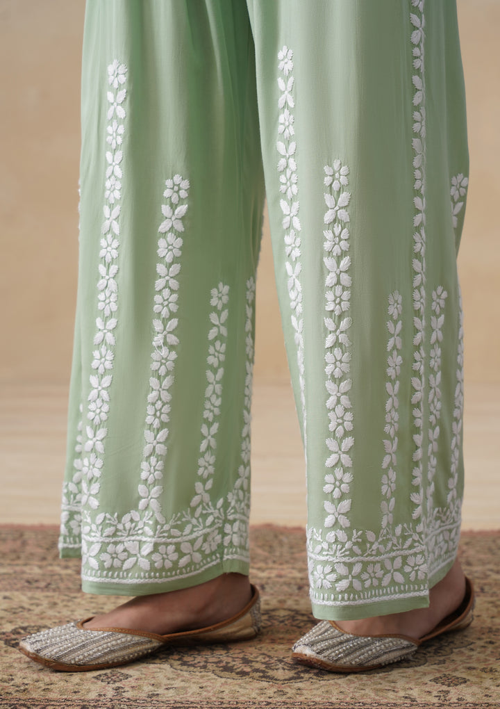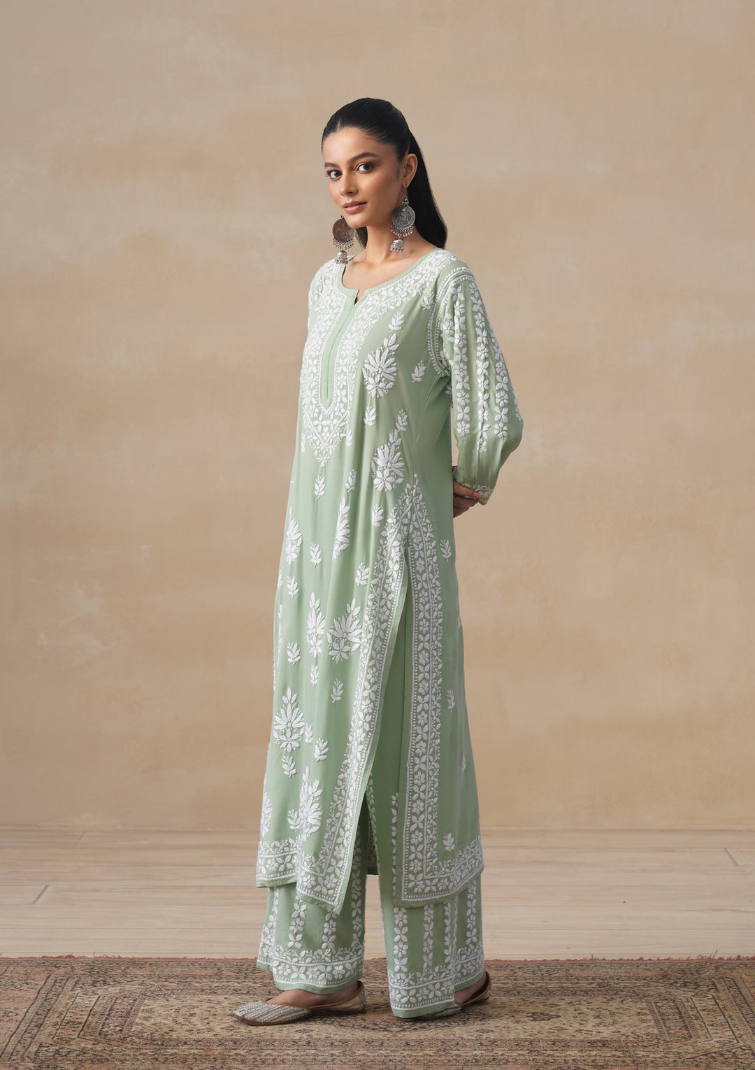 HOC Modal Chikankari Solid Women's 2 PC Long Kurta Set - Light Green