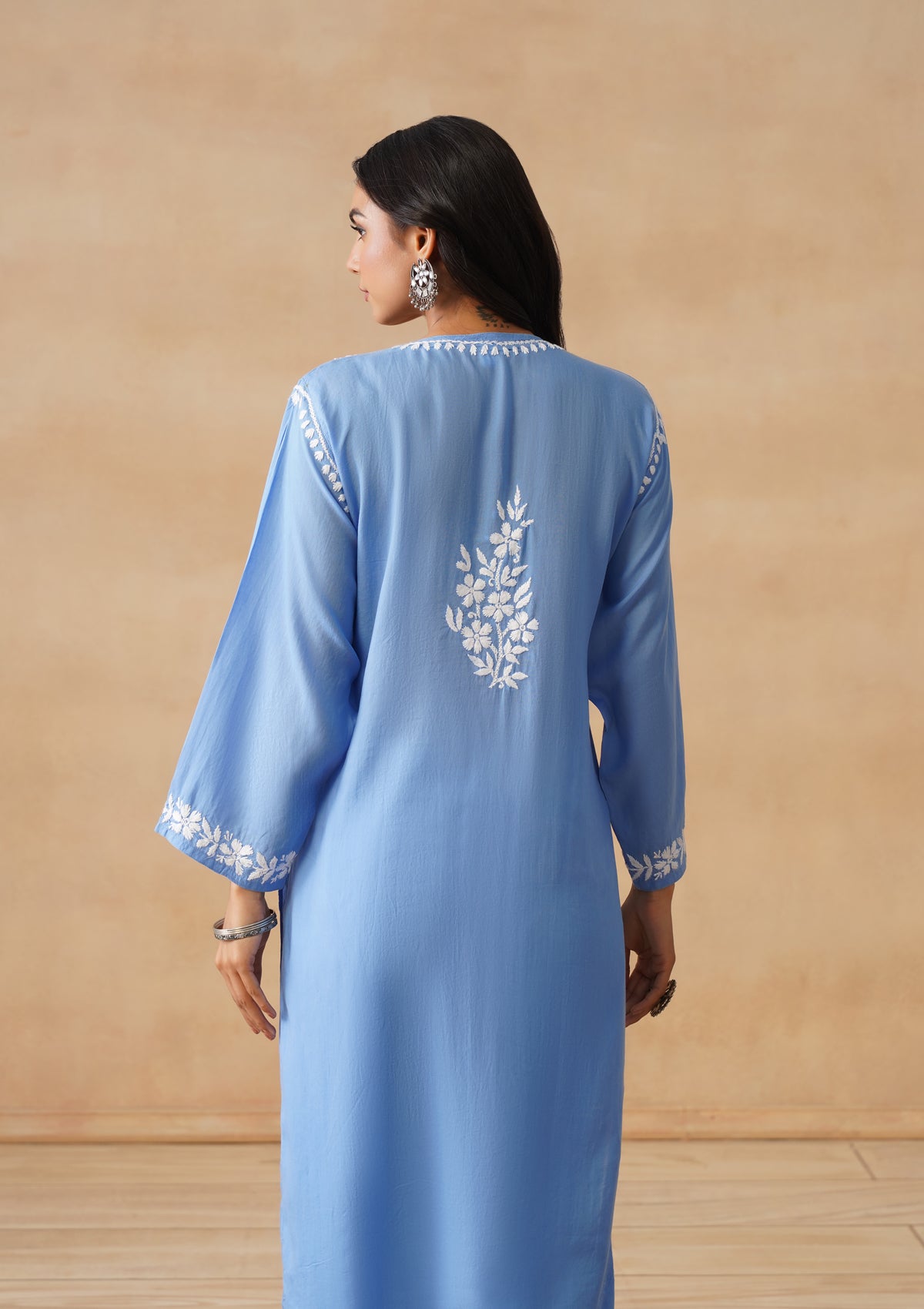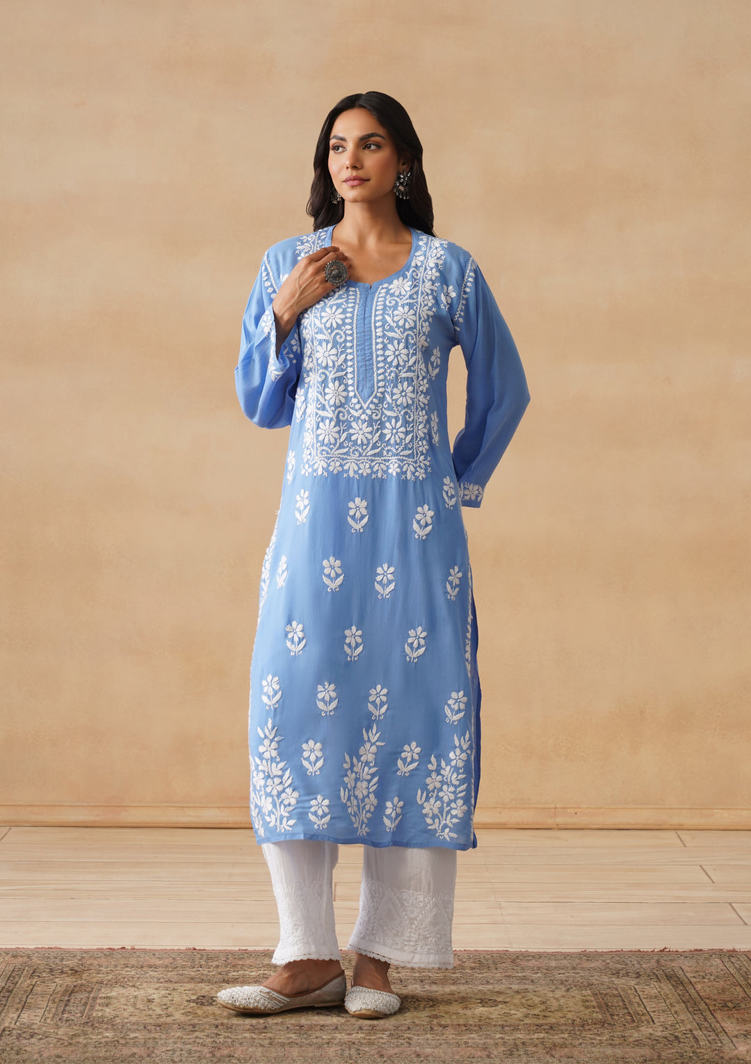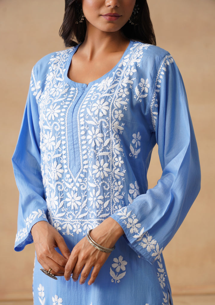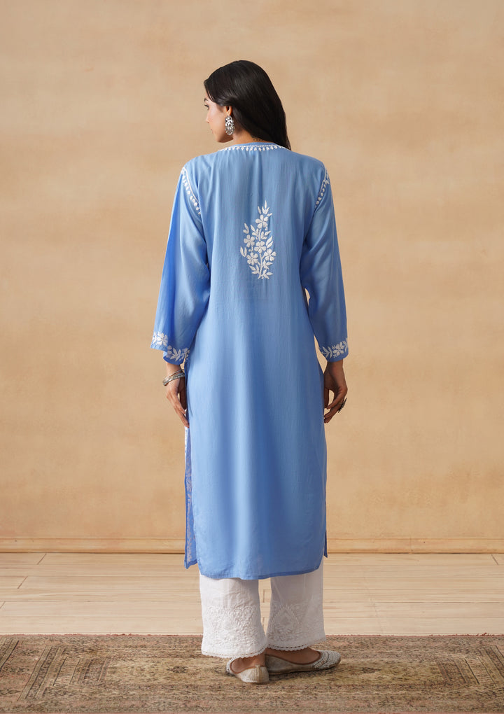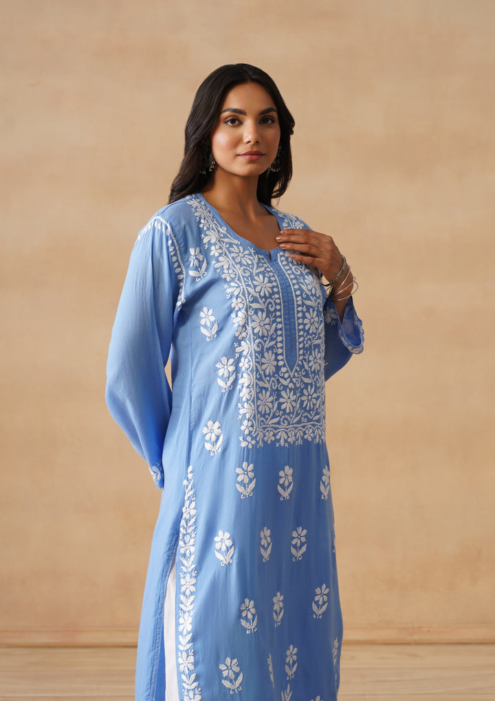 HOC Modal Chikankari Solid Women's Long Kurta - Blue