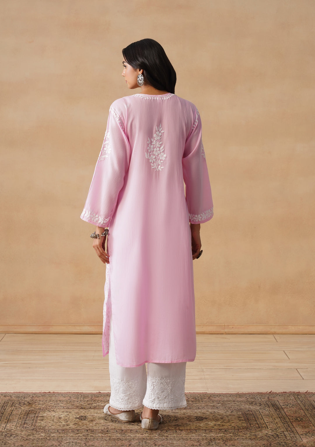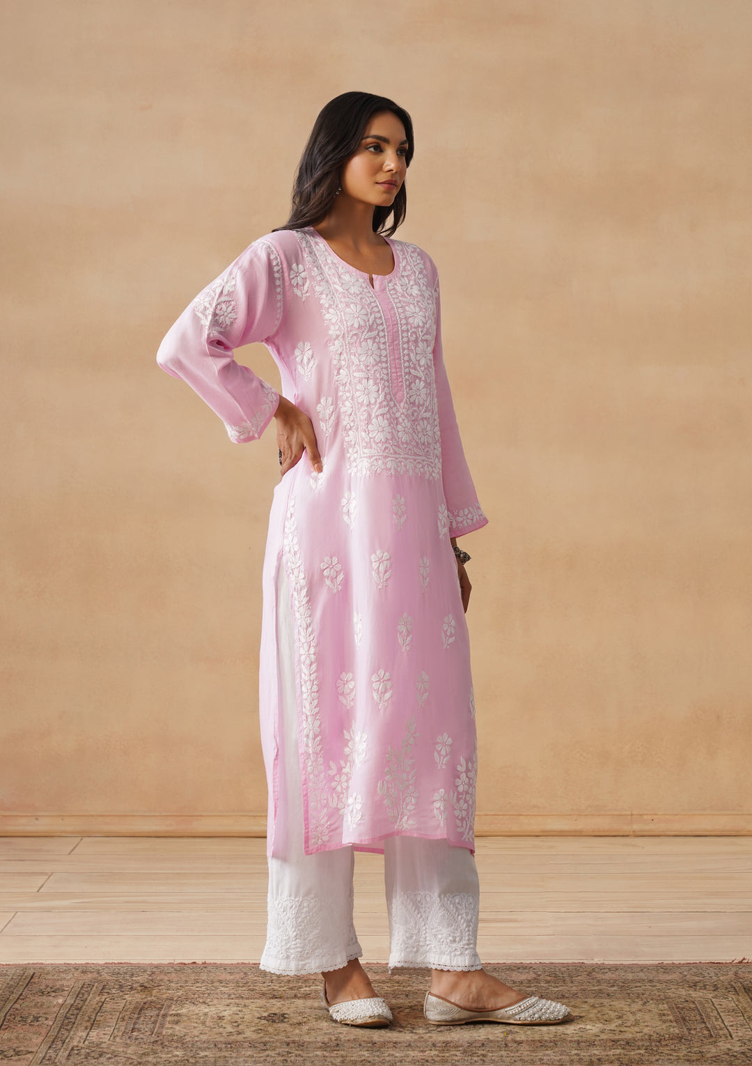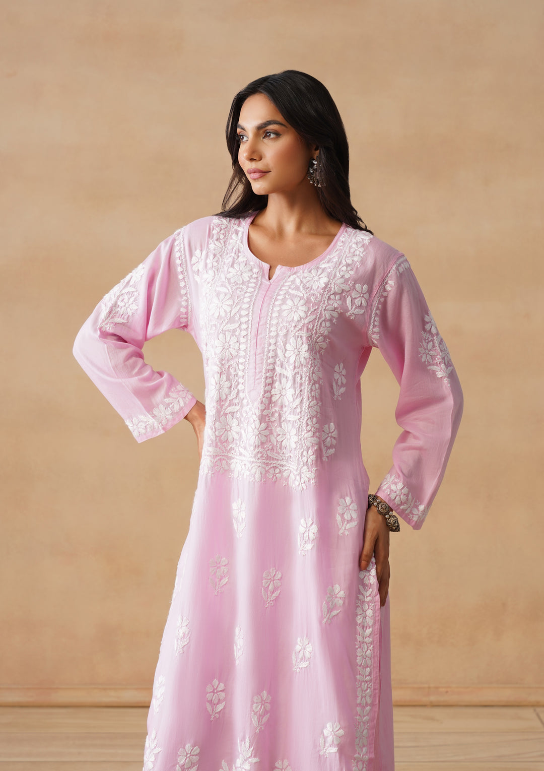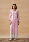 HOC Modal Chikankari Solid Women's Long Kurta - Pink