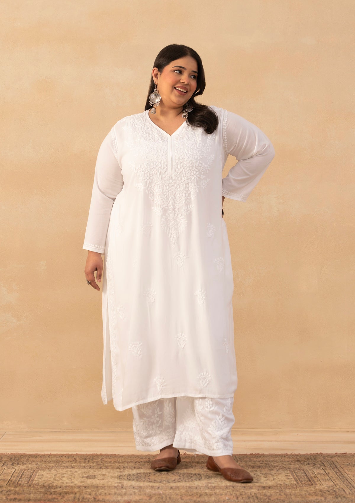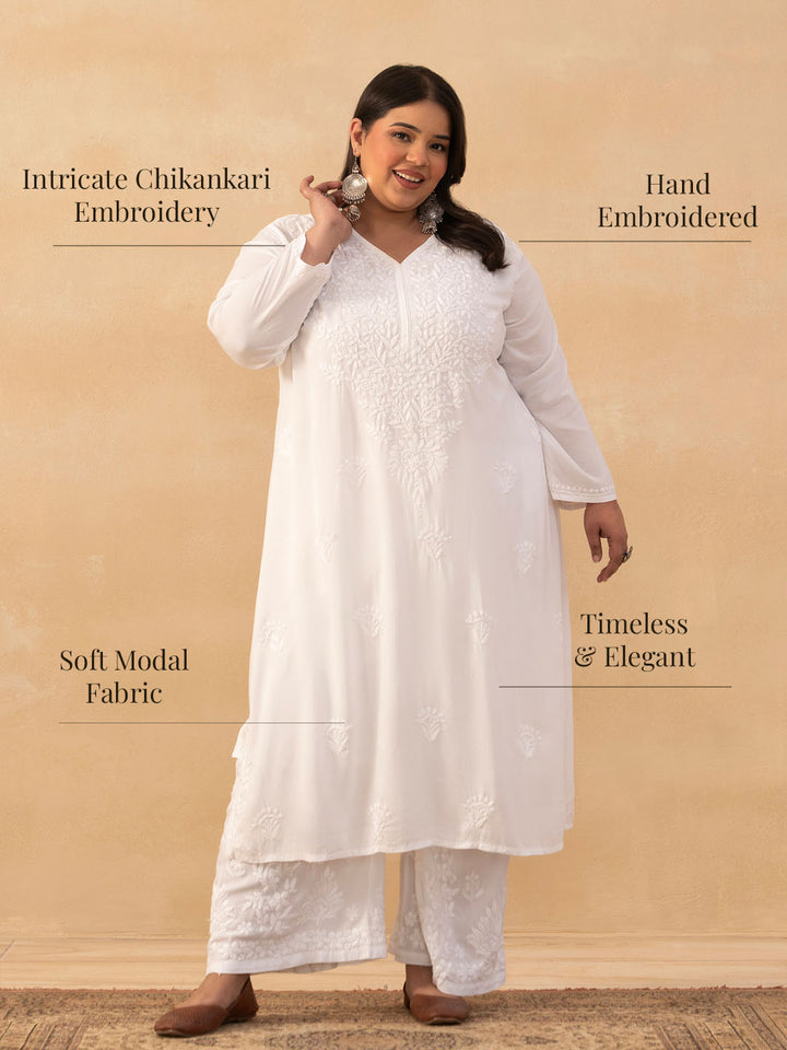 HOC Modal Chikankari Solid Women's Long Kurta - White