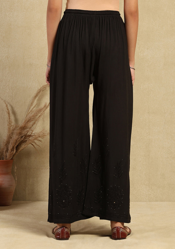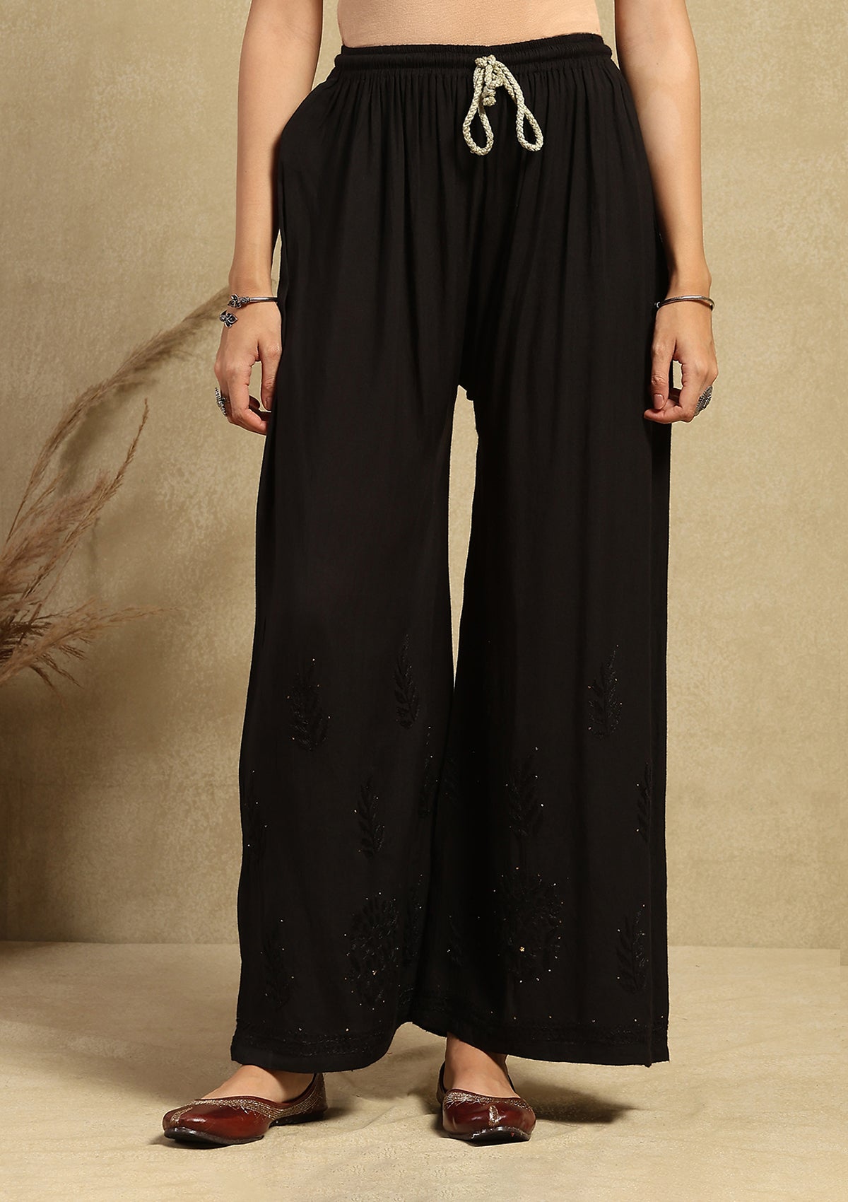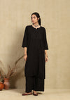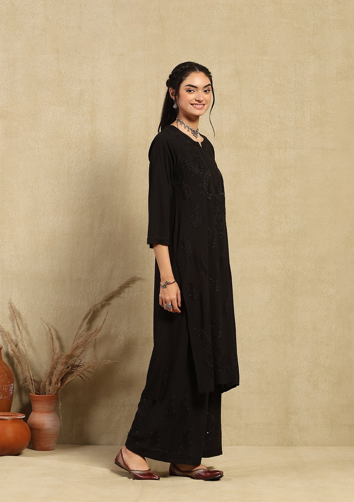HOC Rayon Chikankari Solid Women's Long Kurta - Black