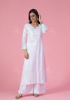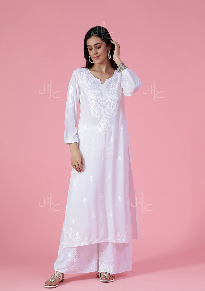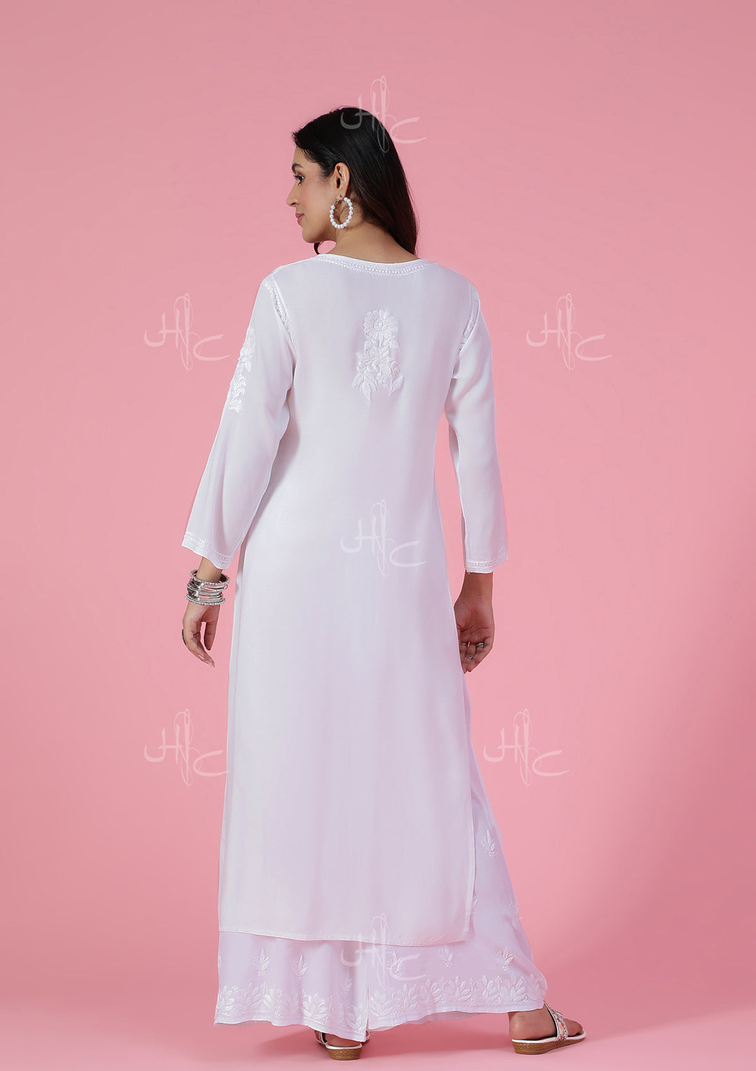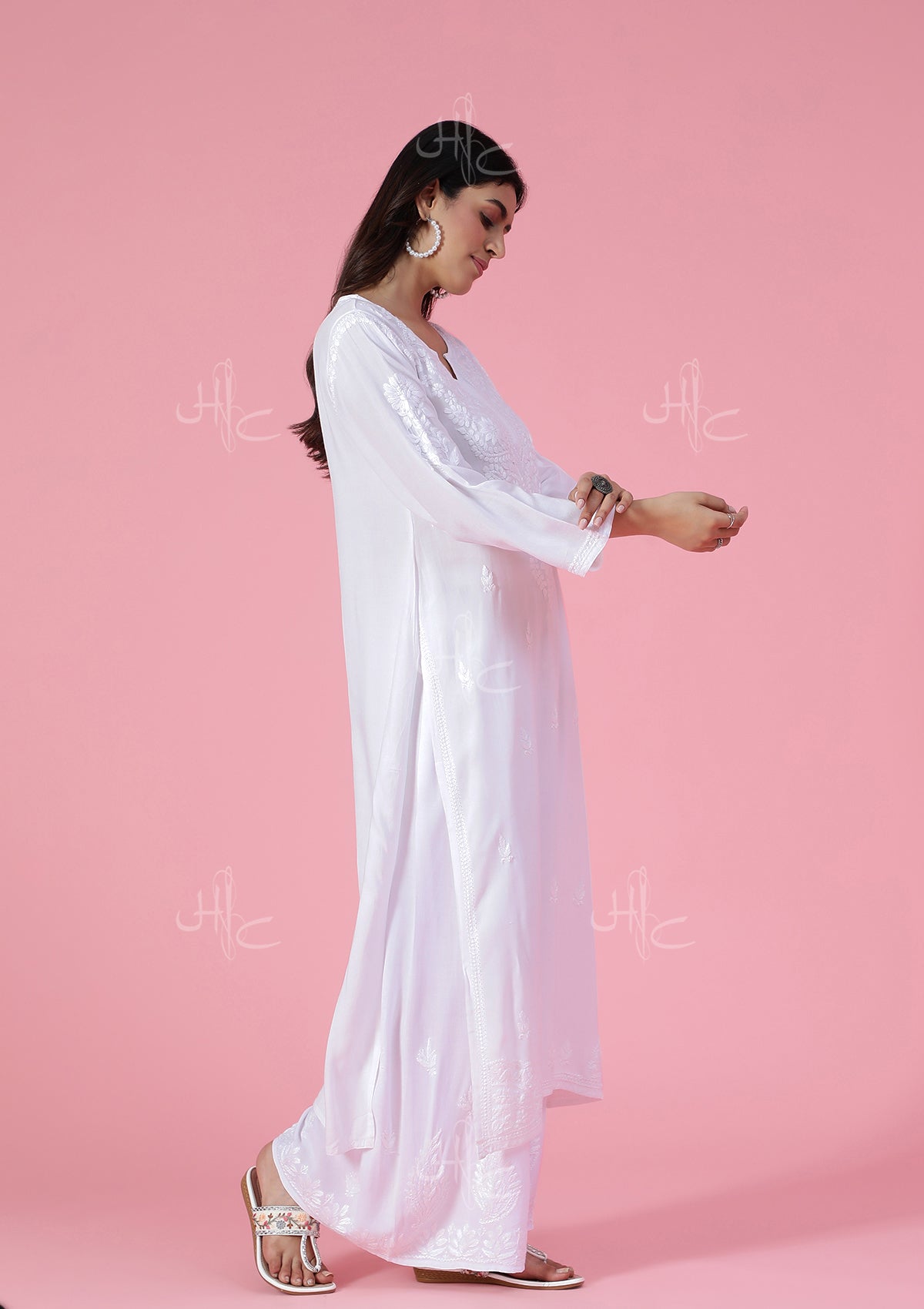 HOC Rayon Chikankari Solid Women's Long Kurta - White