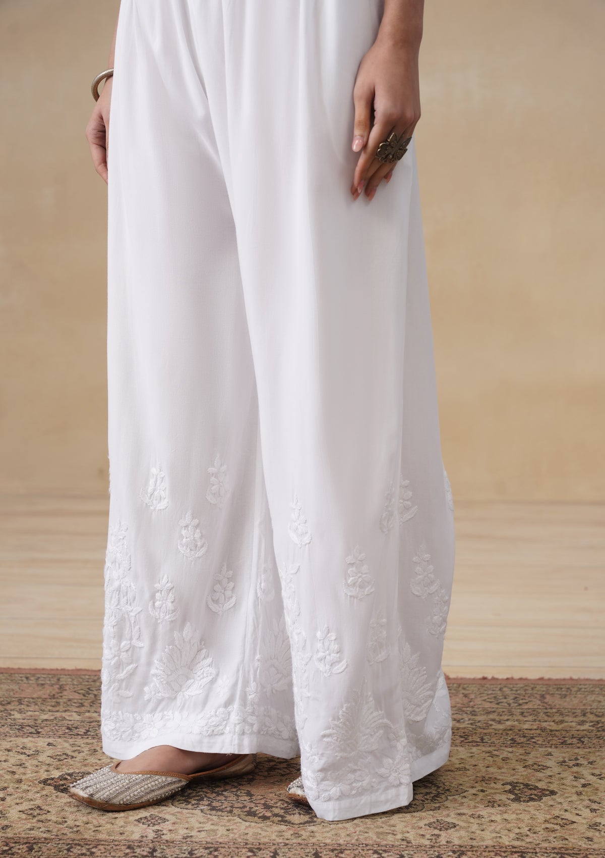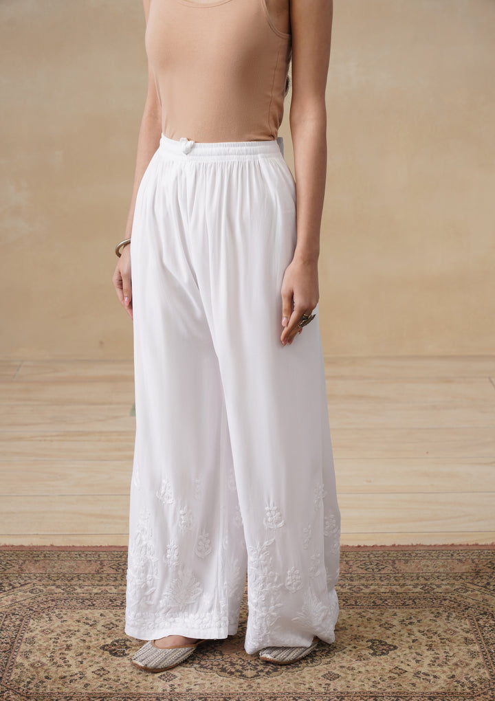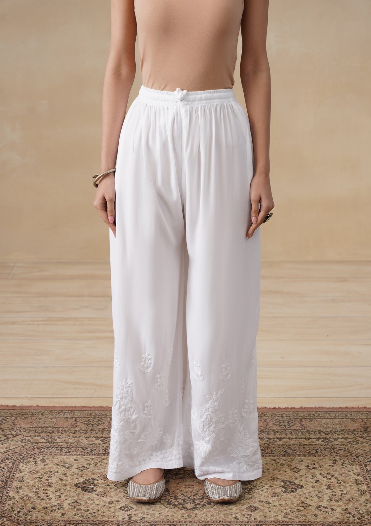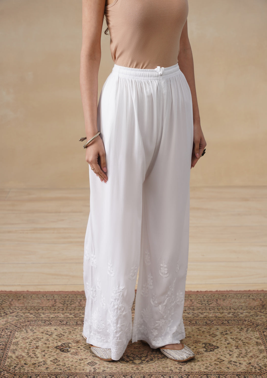 HOC Rayon Chikankari Solid Women's Palazzo - White