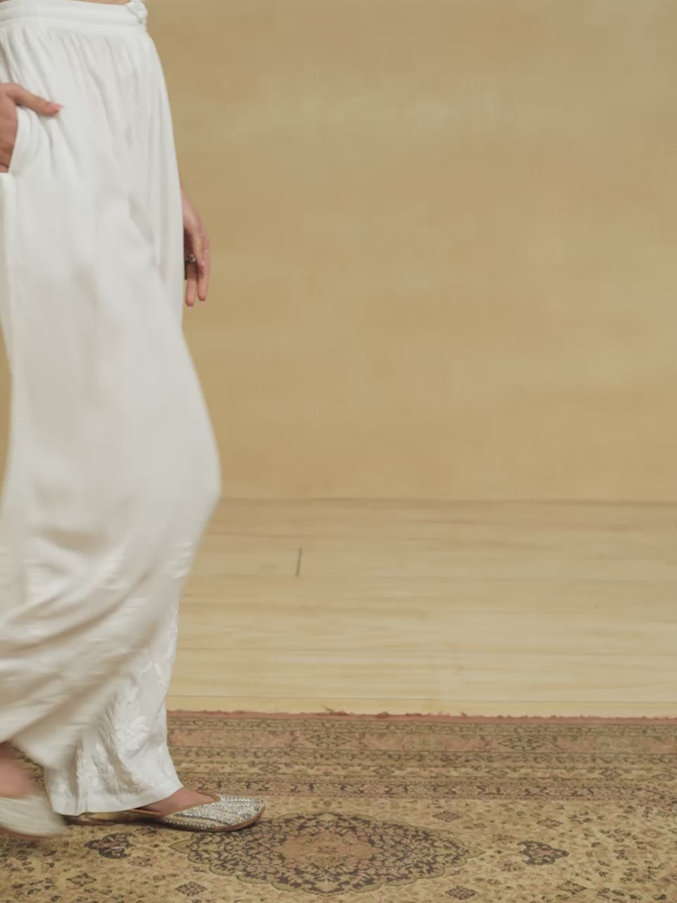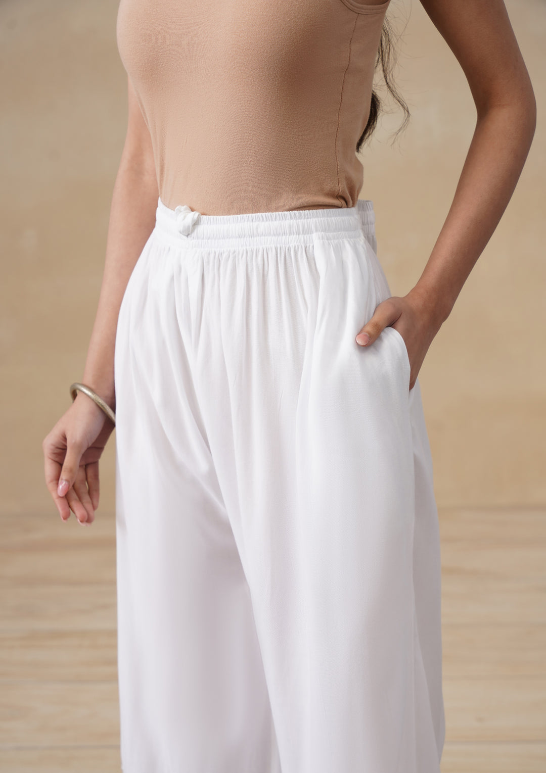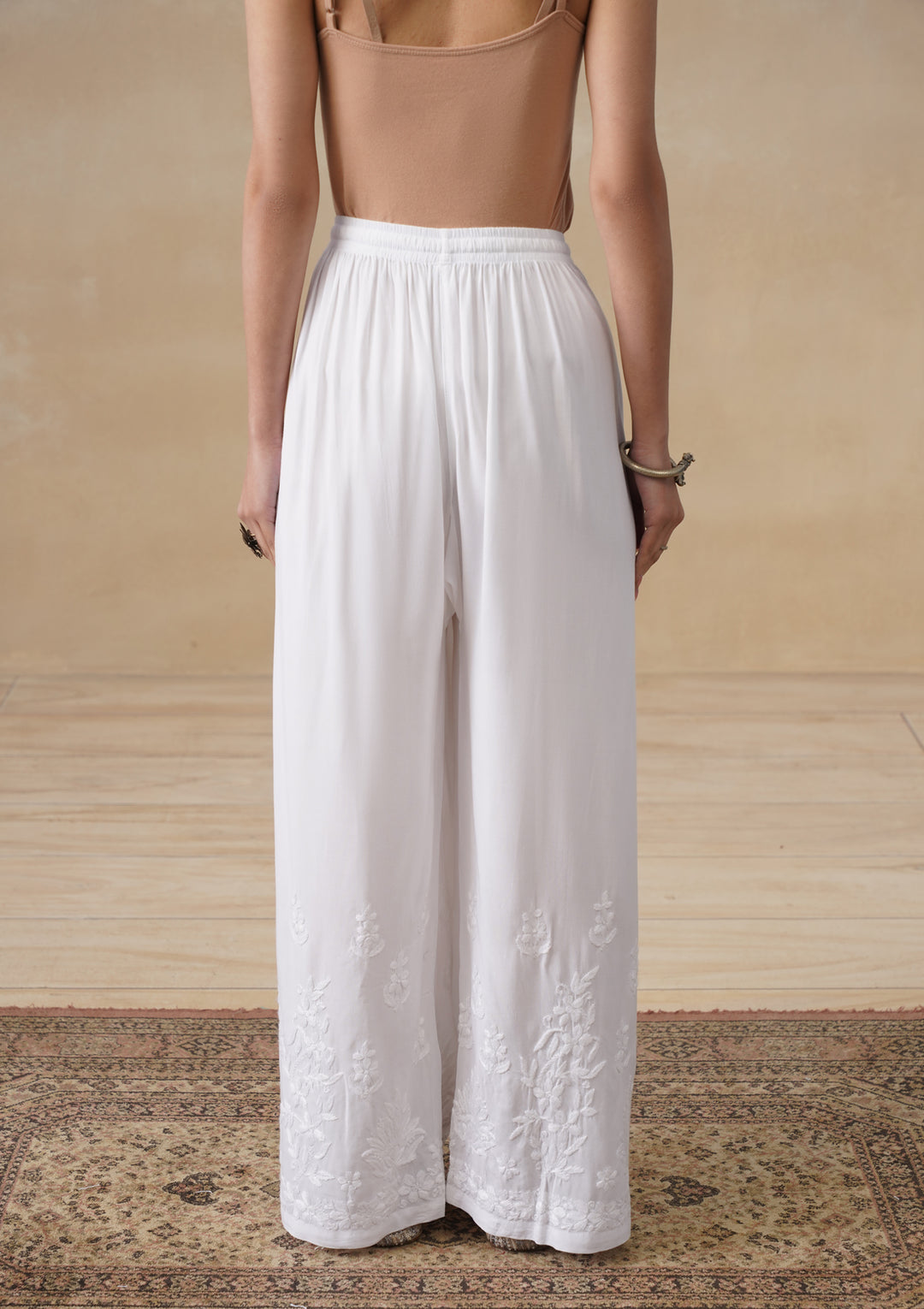 HOC Rayon Chikankari Solid Women's Palazzo - White