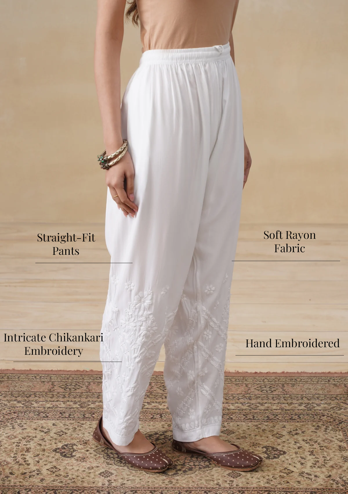 HOC Rayon Chikankari Solid Women's Pant - White