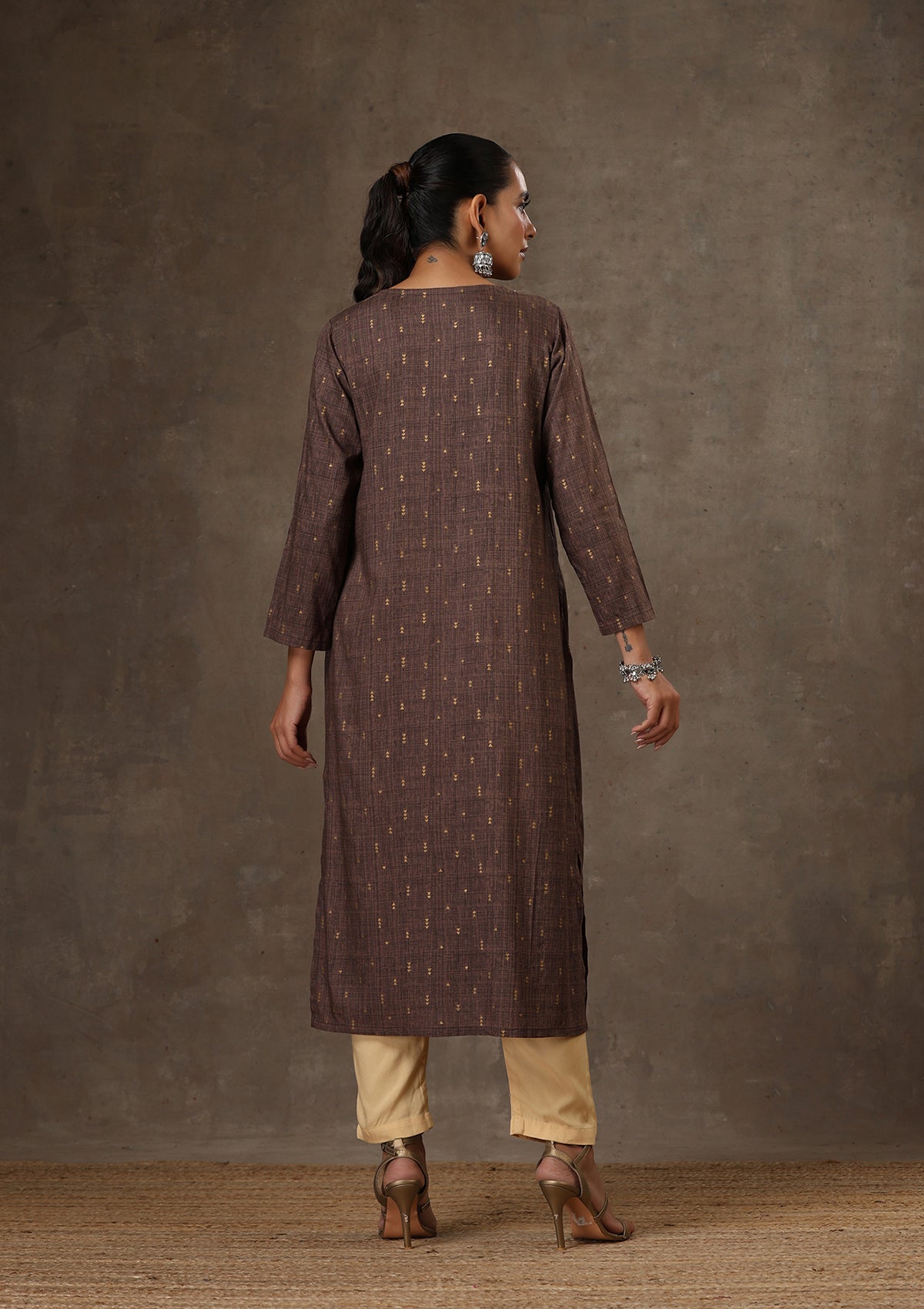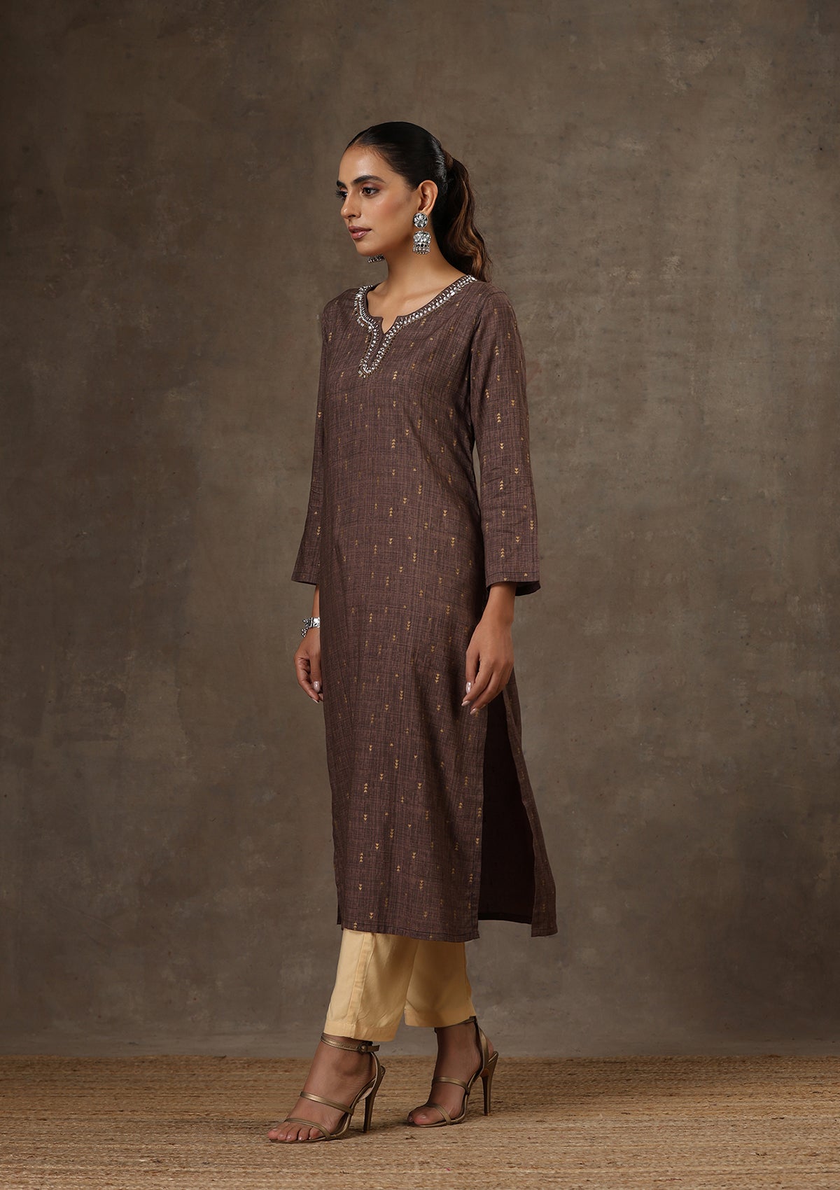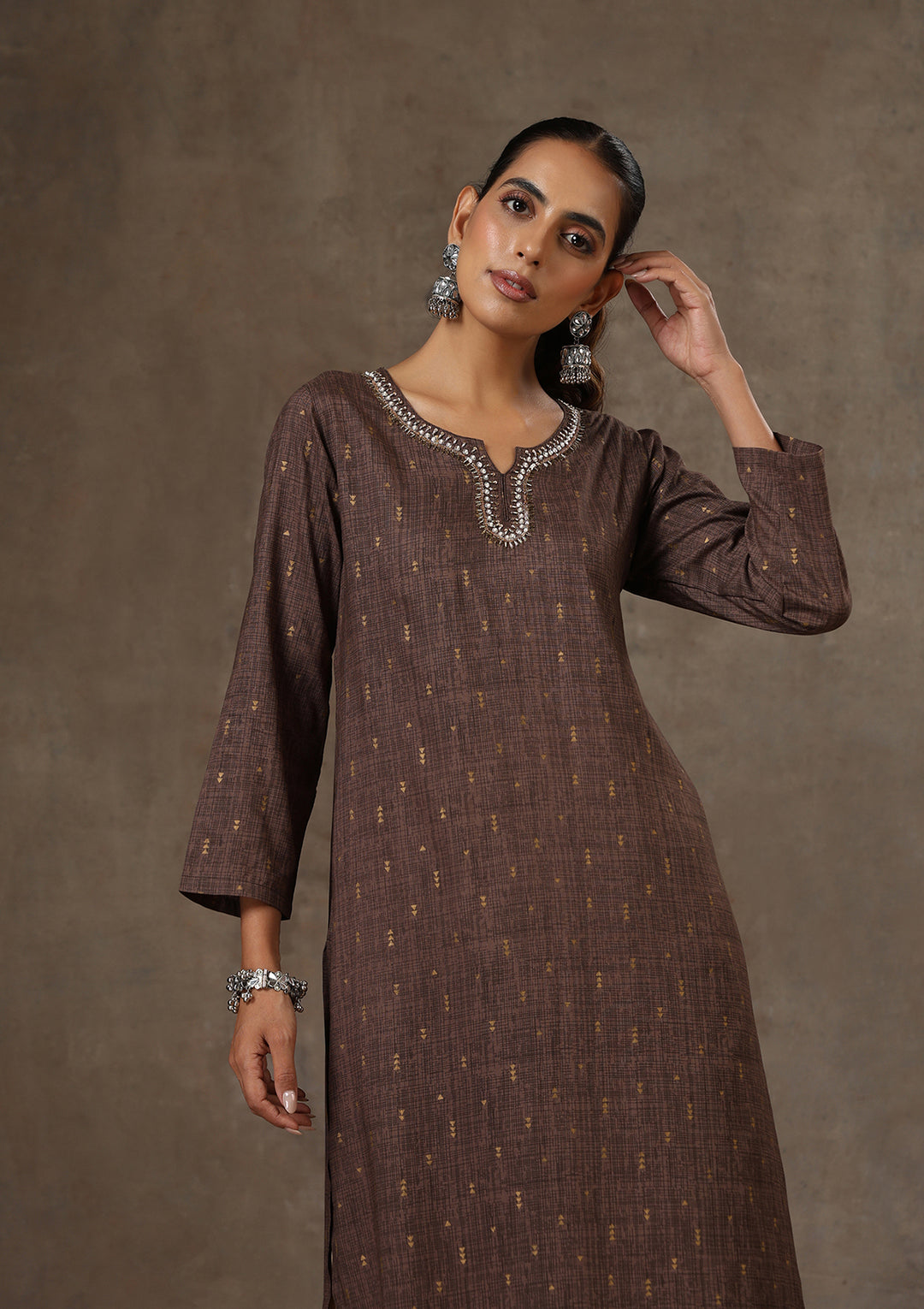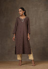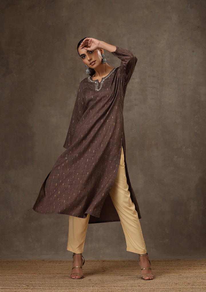HOC Rayon Hand Embroidered Printed Women's Long Kurta - Brown