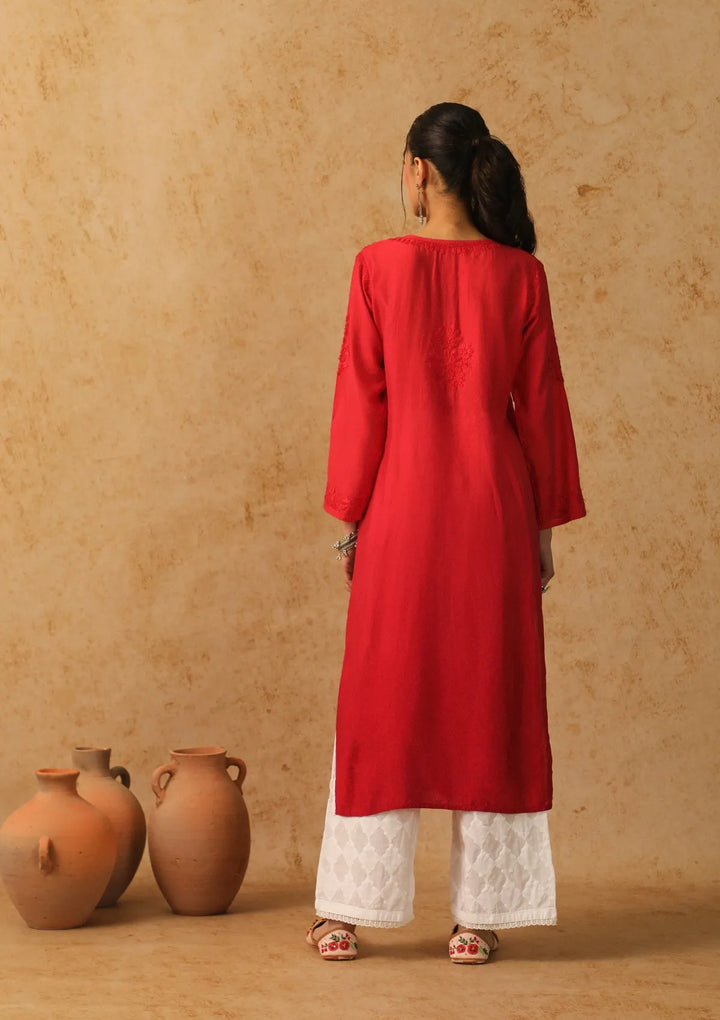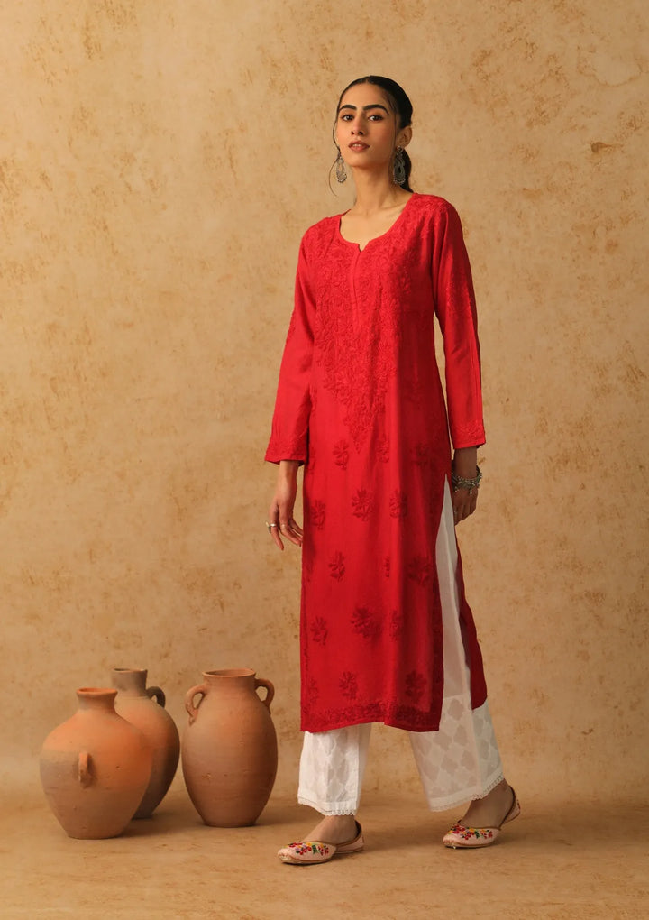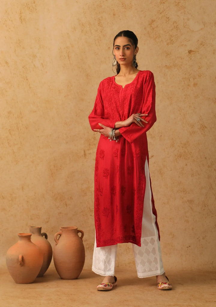 HOC Shab Chikankari Chanderi Straight Kurta