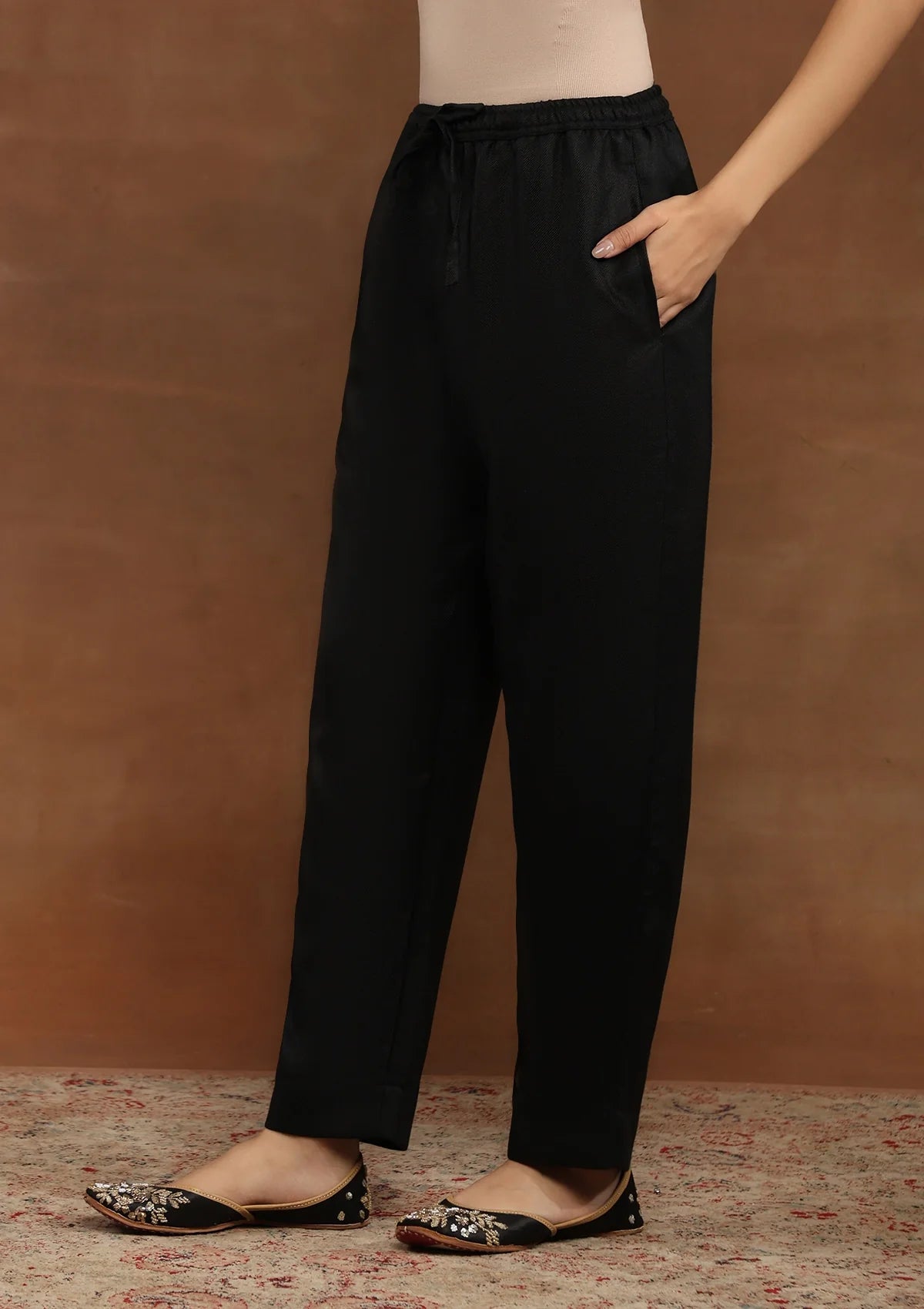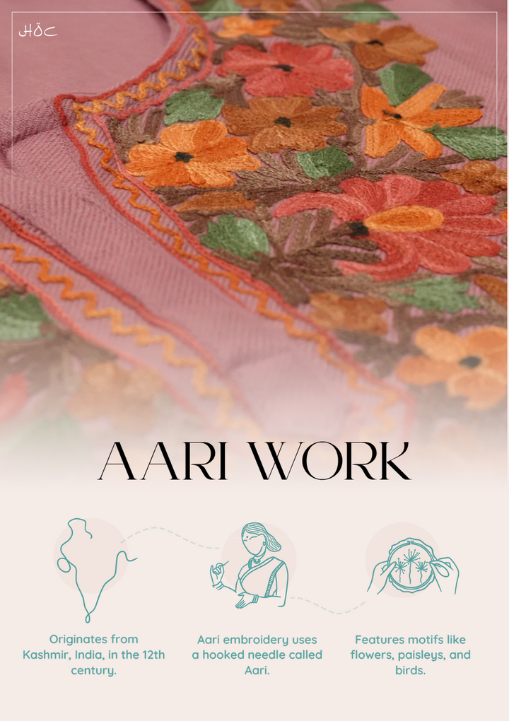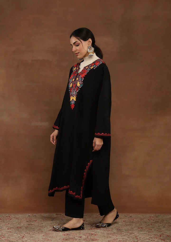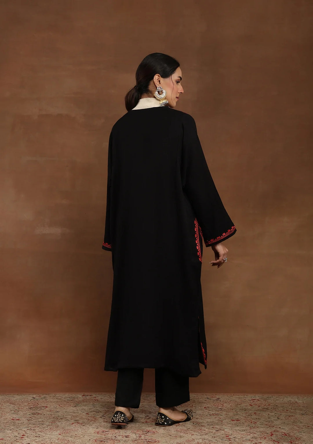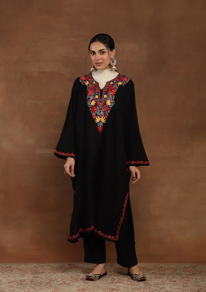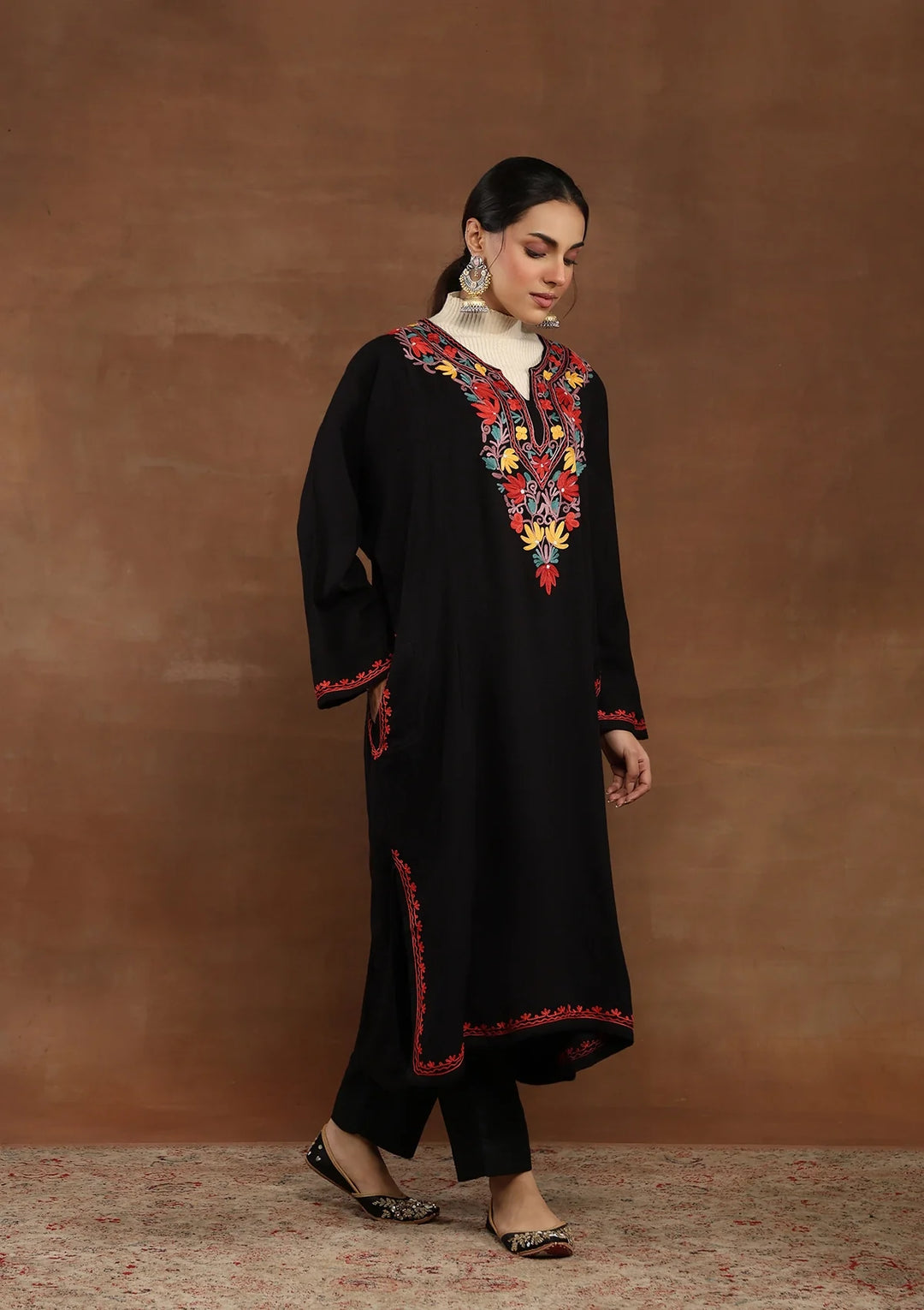 HOC Wool Aari Embroidered Solid Women's Phiran-Black